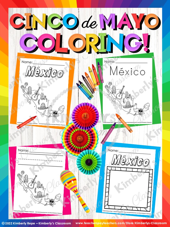 Cinco de Mayo Coloring Pages - English & Spanish Vocabulary Activities