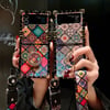 Samsung Galaxy Z Flip 3 4 Case Palace Flowers Square Rivet Rhinestone Ring Holder Colors