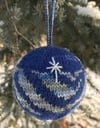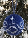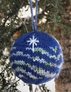 These ornaments are cleverly constructed without the necessity of awkward knitting around styrofoam balls. The ornaments are made in two sections with all shaping worked in stockinette in the main color. The pieces are later placed over a ball and grafted together using kitchener stitch. This requires a bit of patience but is much easier and enjoyable than trying to knit around a solid ball.