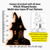 Halloween Haunted house pdf template, silhouette Witch on a broom, 1ft 2ft 3ft 4ft, 5ft, 6ft 7ft 8ft silhouette Template stencil pattern, cemetery scene trace & cut pattern, Halloween yard art, print, trace and cut Décor, Digital Downloa