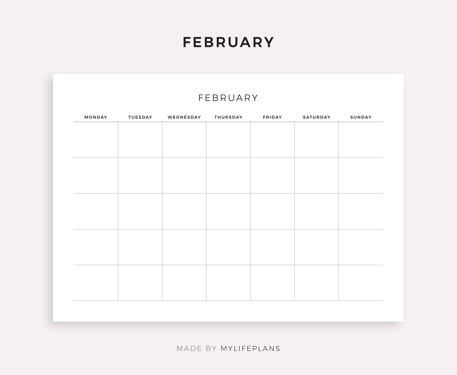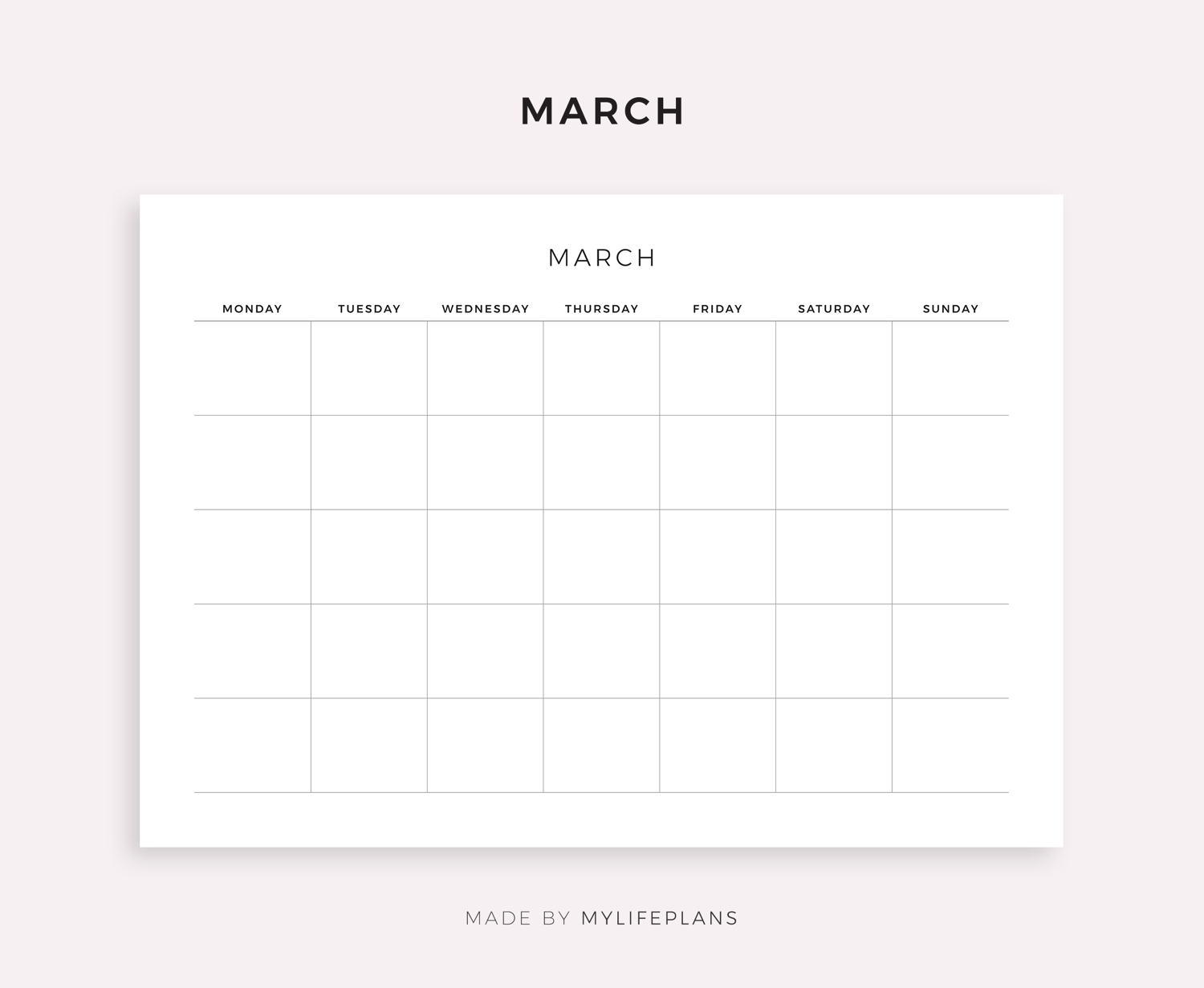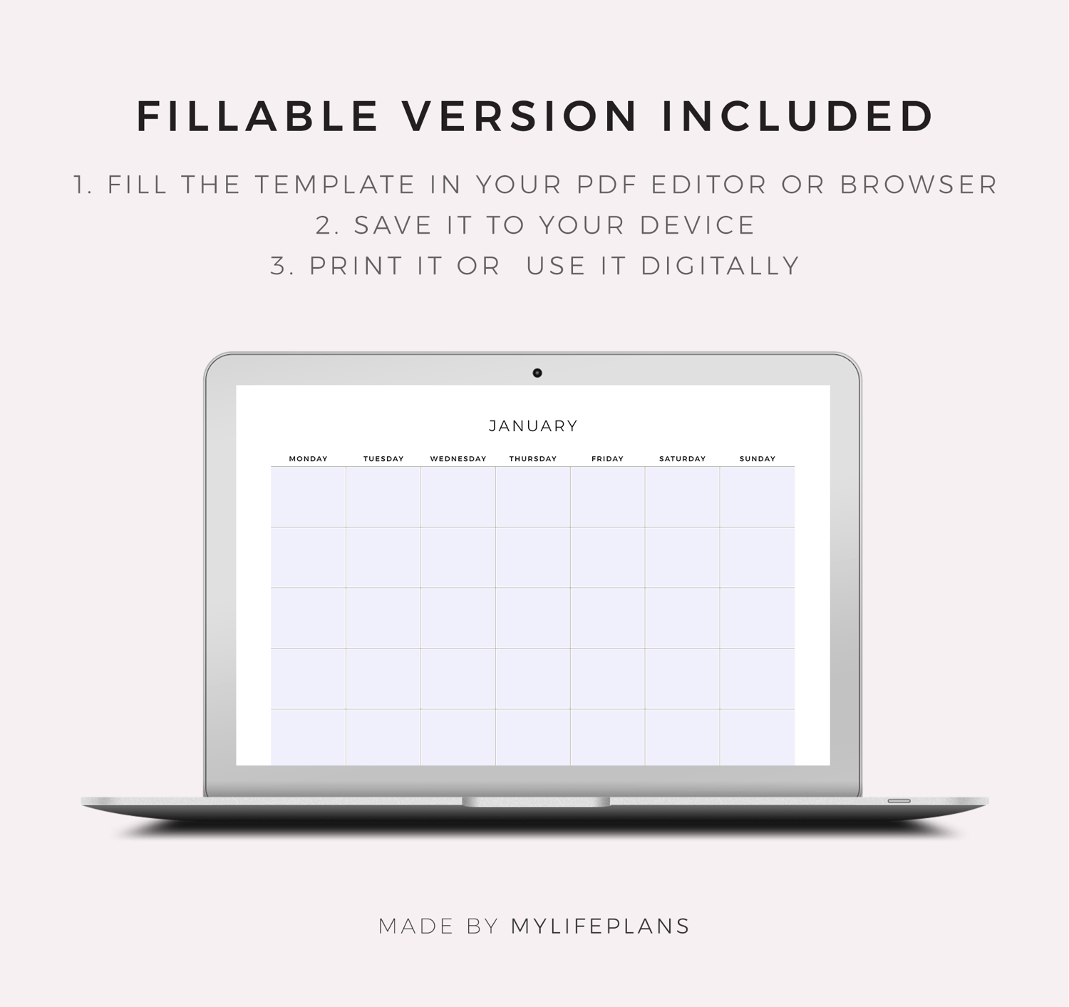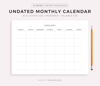 This is a printable undated monthly calendar — just download, print, and start using it right away.