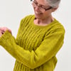 Inspired by rows of flower bulbs growing in a field, the Chatto Sweater has wonderful texture. As the bulbs begin to grow, the leaves spread out over planted ridges and a central flower head emerges. The ridges are knitted with long lines of single eyelets and flower heads are formed using a double eyelet and twisted stitch combination. By offsetting the pattern, a lattice of leaves is formed across the sweater front and back. The lattice pattern is worked on a reverse stocking stitch background. The set-in sleeves have a single flower motif at the cuff.
