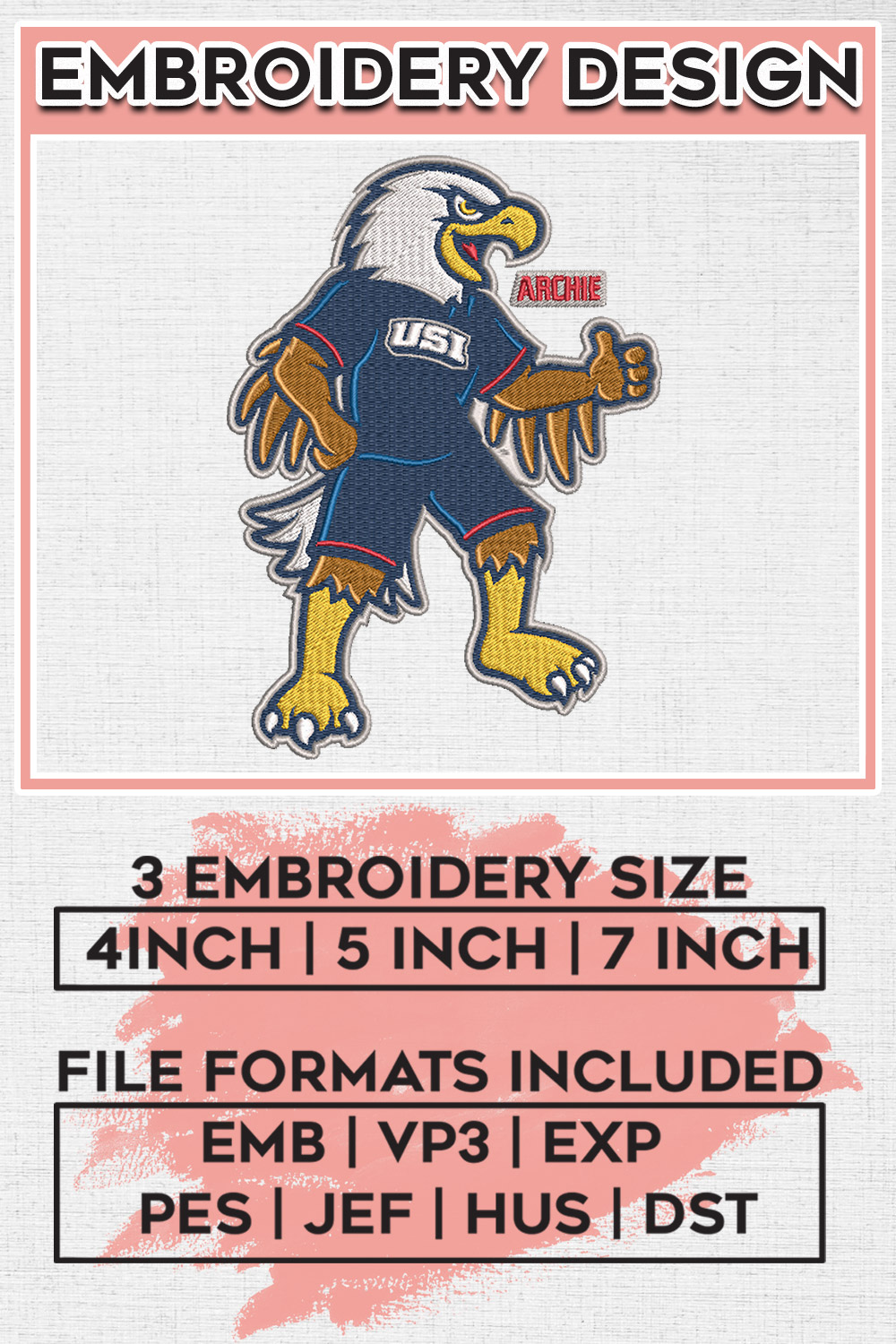 NCAA Southern Indiana Screaming Eagles College Football Team Mascot Logo Embroidery Designs, NCAA Southern Indiana Screaming Eagles Machine Embroidery Files, NCAA Logo embroidery designs, NCAA Southern Indiana Logo, Digital Download