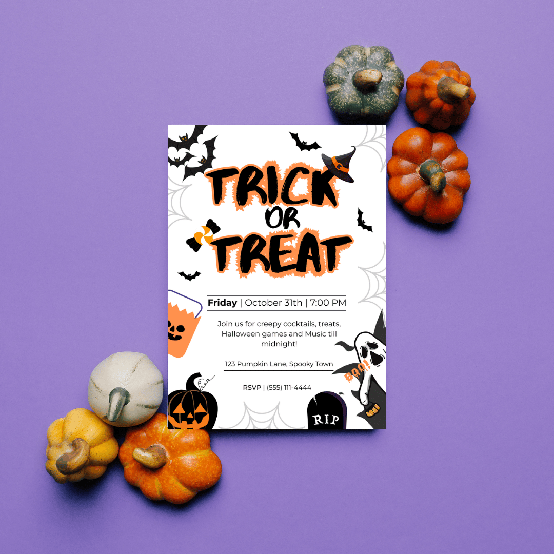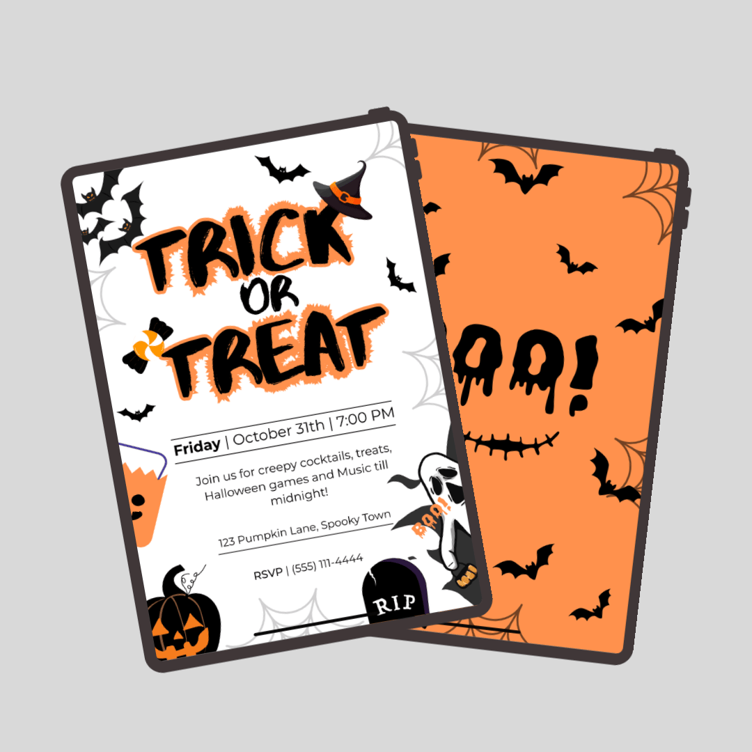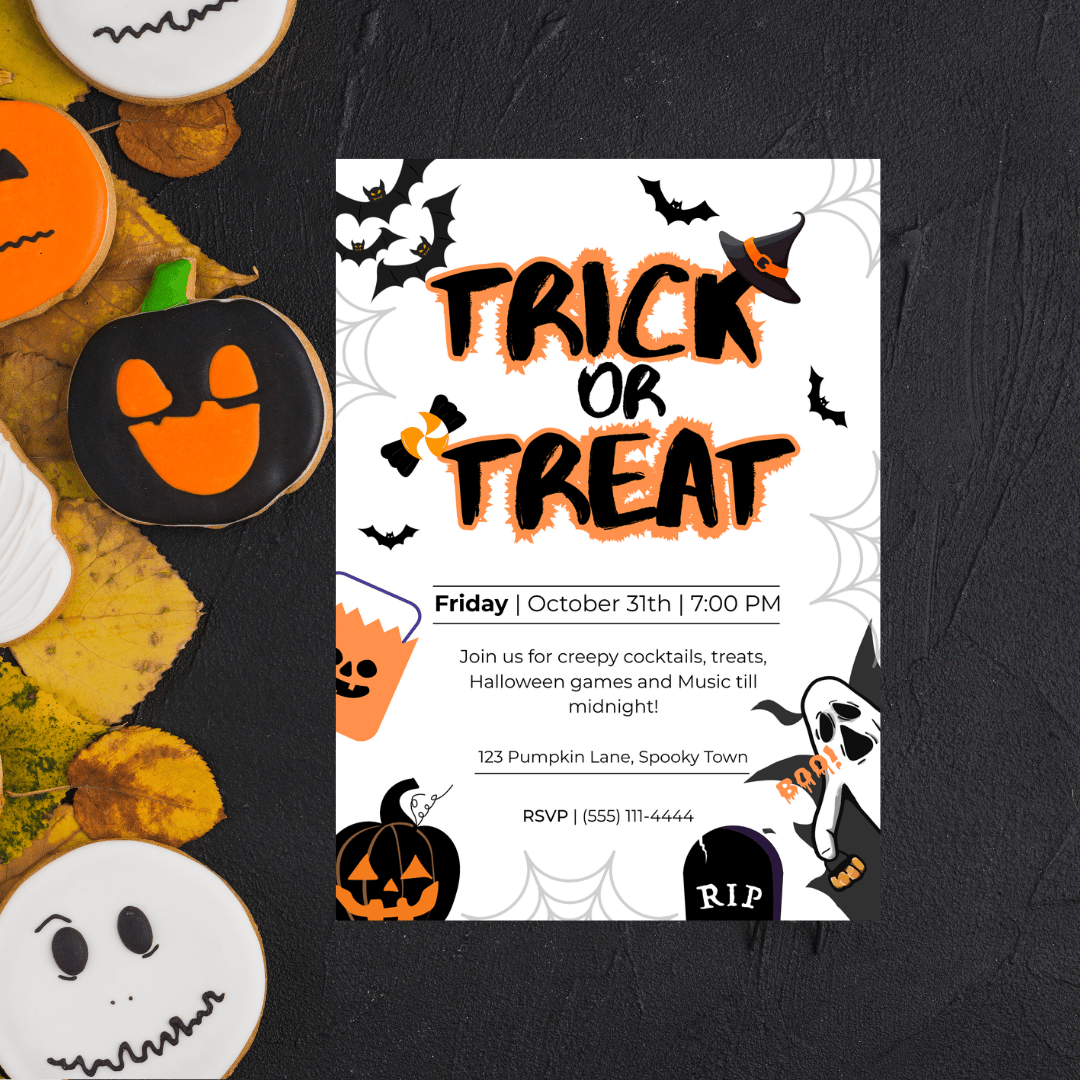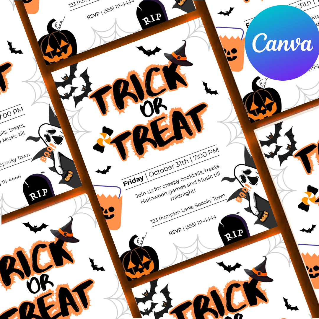 Trick or Treat Halloween Invitation Editable ( Canva Template )