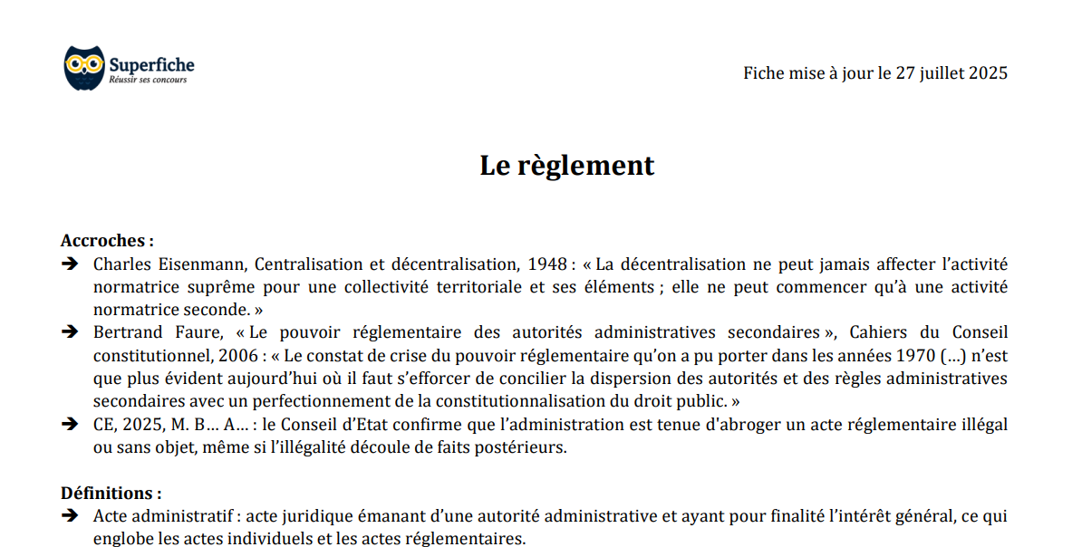 Fiche de préparation aux concours administratifs publiée par Superfiche.