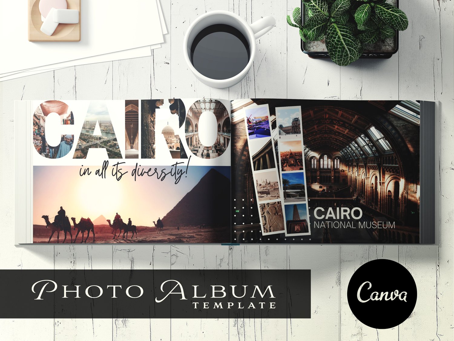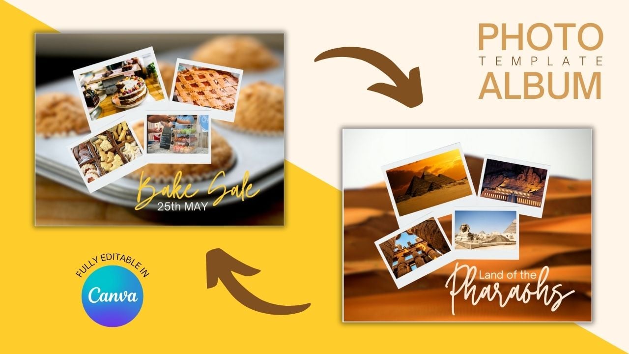 Immortalise your amazing travel / event memories in a digital or a printed photo album using this easy to edit Canva template.