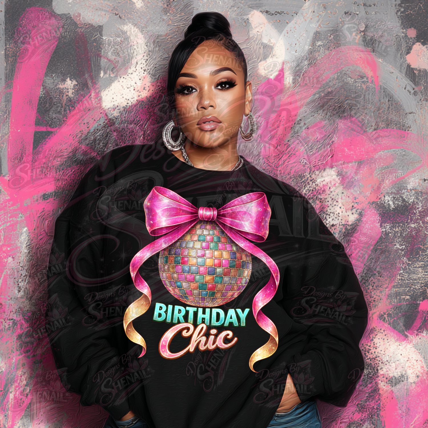 Celebrate in style with this fun and glamorous Birthday Chic Disco Ball PNG design. Perfect for creating trendy birthday shirts, party outfits, and custom gifts, this sparkling design adds a fashionable and festive vibe to any celebration.