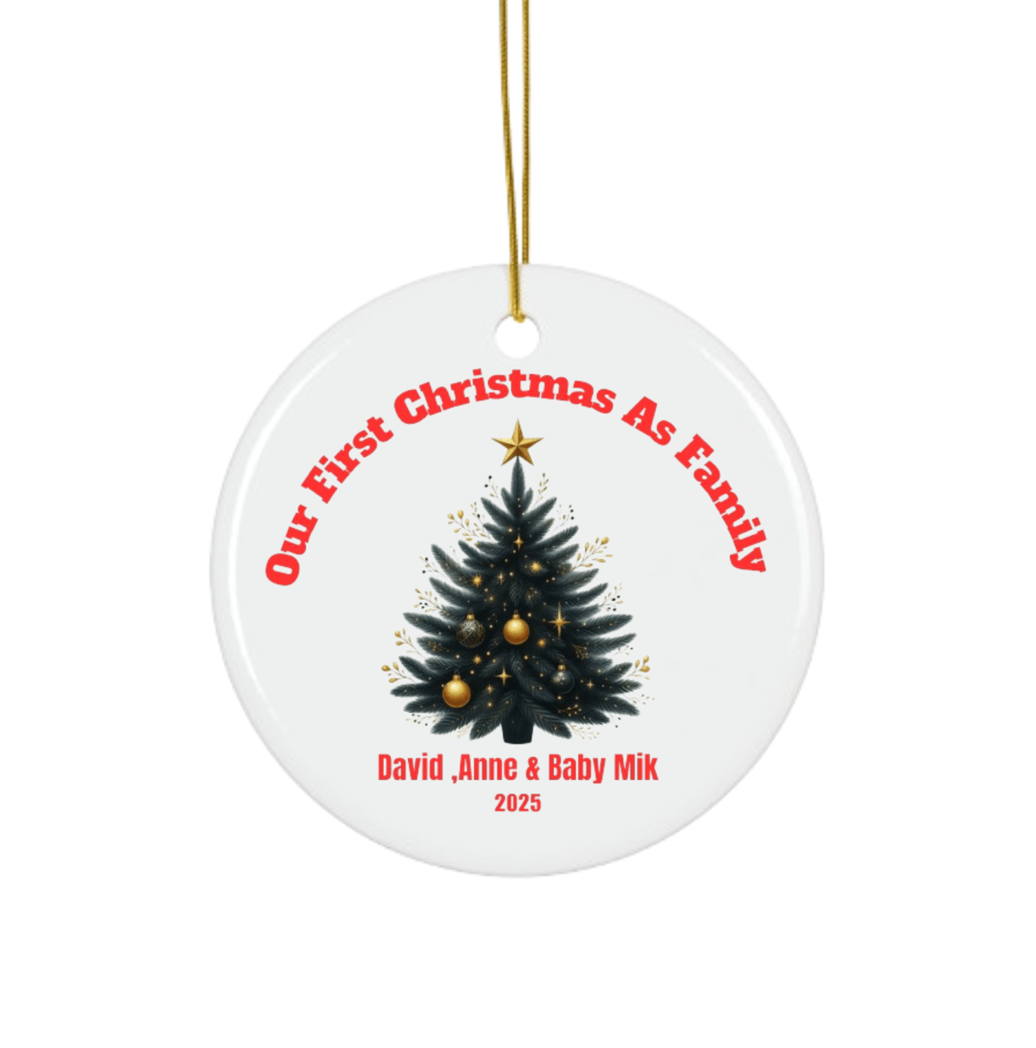 This “Our First Christmas as Three 2025” ornament makes the perfect keepsake to remember your first Christmas together as a family of three. Whether it’s welcoming a new baby, your little one’s first holiday, or simply celebrating your journey as parents, this ornament will become a treasured memory for years to come.