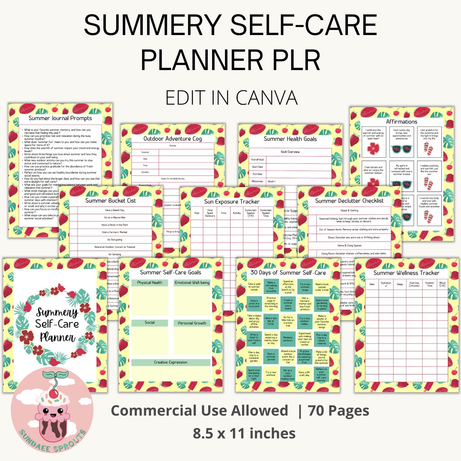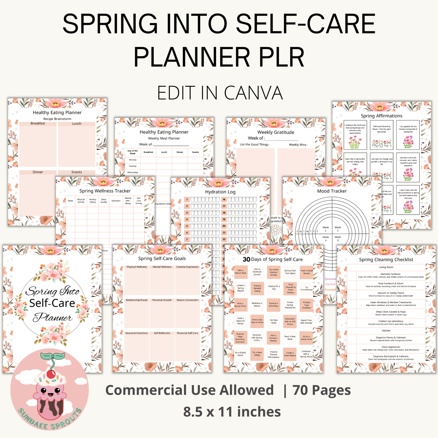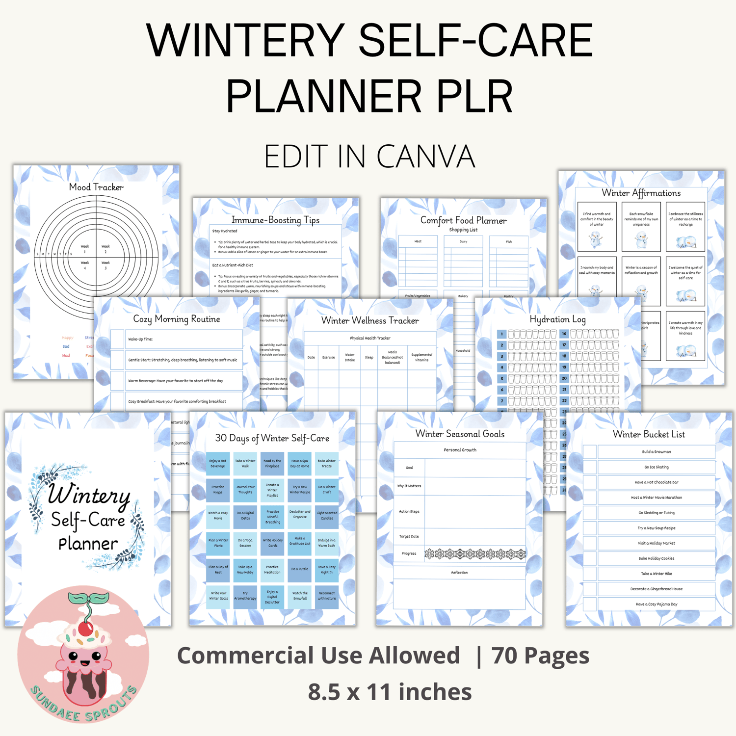 All the planners are 8.5 x 11 inches in size. They are easily edited in Canva. You get a commercial use license which means you can edit the planners to your own style and sell them to you audience with personal use rights only. Remember the more unique you edit the designs, the better you'll standout and sell!