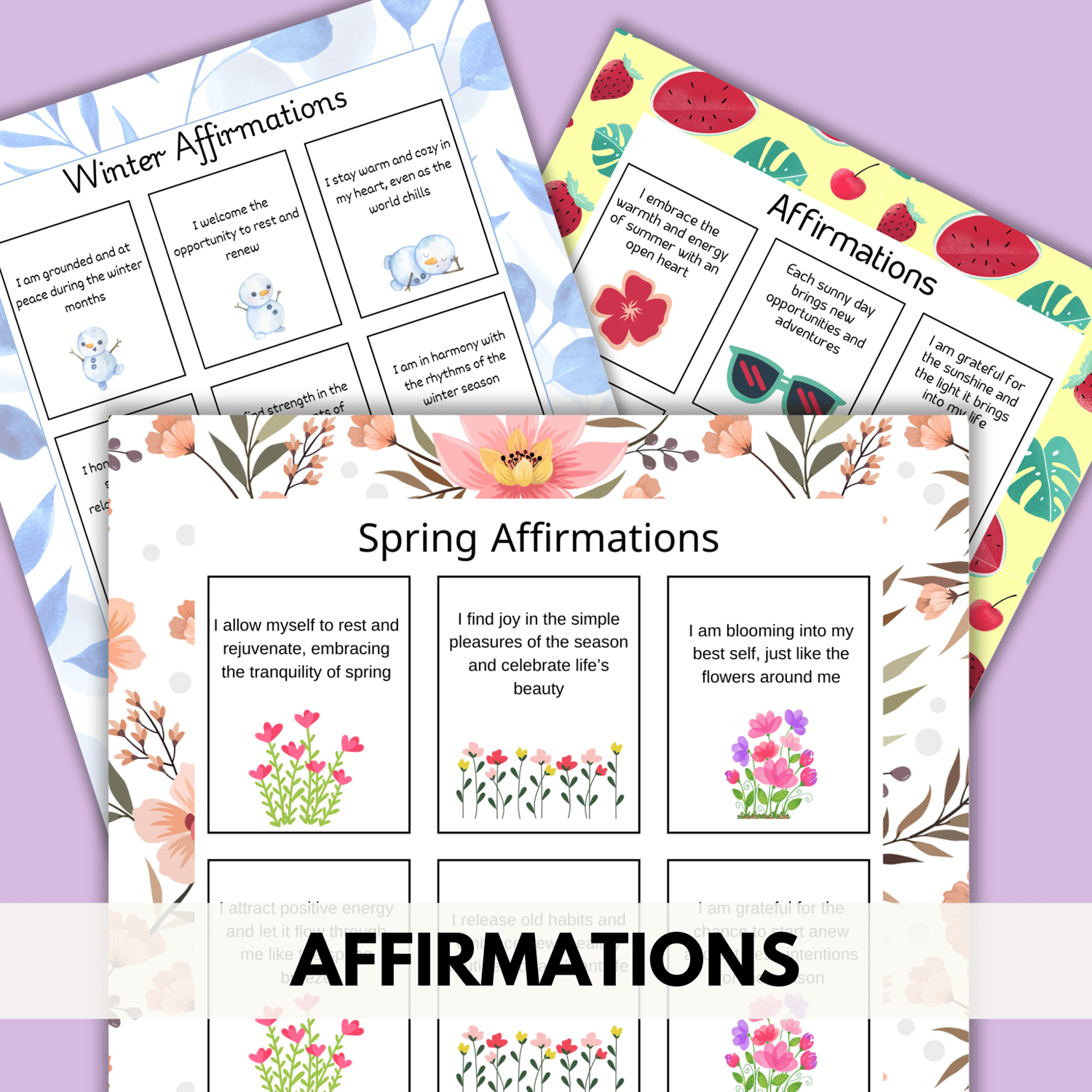 A bundle of 4 beautifully designed seasonal self-care planners. Your audience will want to collect the whole set to encourage self-care for the whole year. Each season has its own seasonal theme with seasonal tips and self-care practices.
