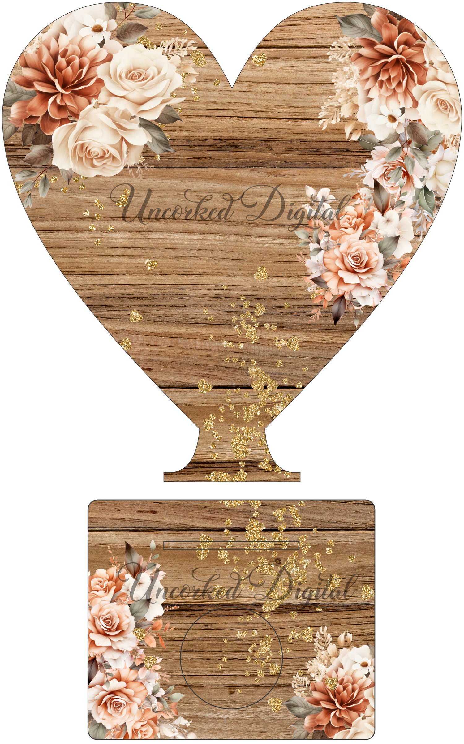 Antique white and wood floral background designs for the heart tea-light blanks from Woodform Crafts.