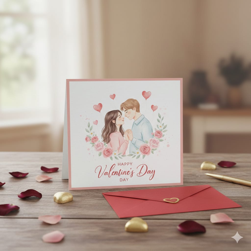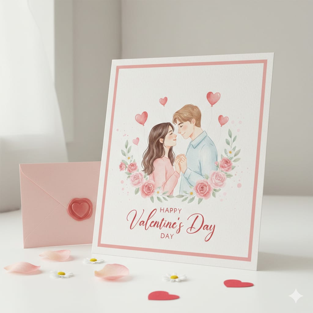 Celebrate love with this soft, romantic Valentine’s Day couple card, designed to express warmth, intimacy, and heartfelt connection.