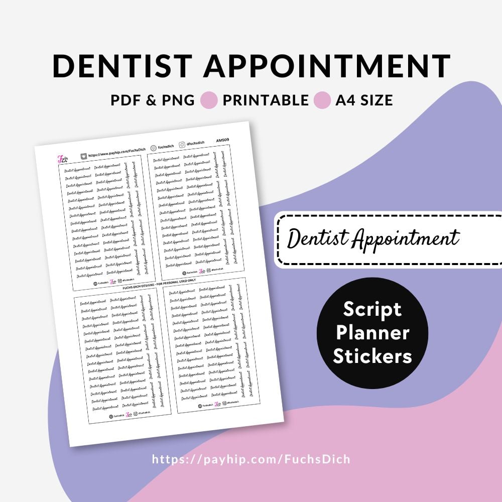 Organize your life with our Dentist Appointment script planner stickers! These stylish and functional stickers are perfect for any type of planner and help bring structure to your day. With each sticker sized to fit a 1-inch width box, they’re ideal for various planners, journals, or scrapbooks, giving a neat, cohesive look to your layouts.