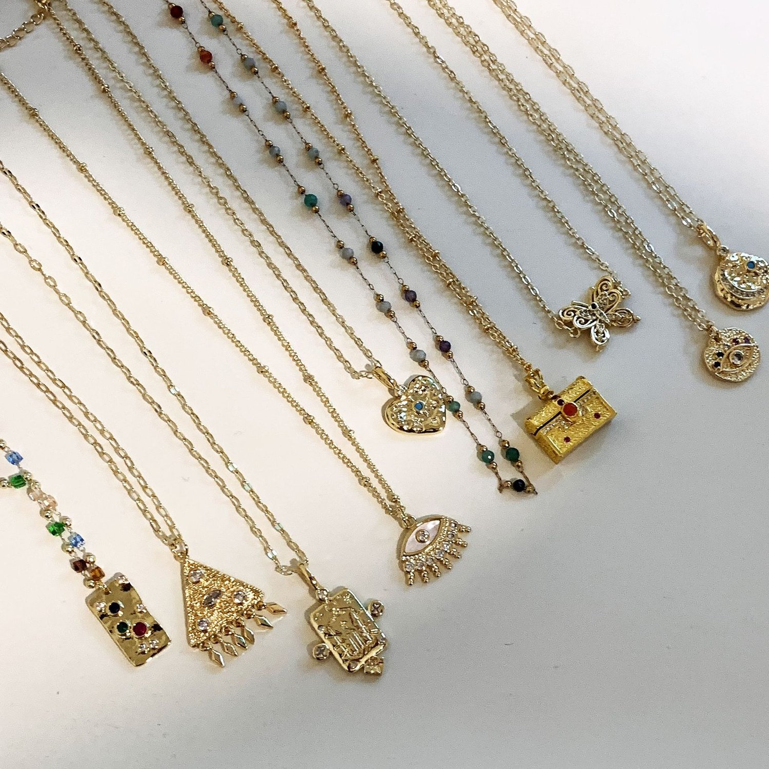 Boho vintage style heart smiley eyes irregular midi stacking necklace