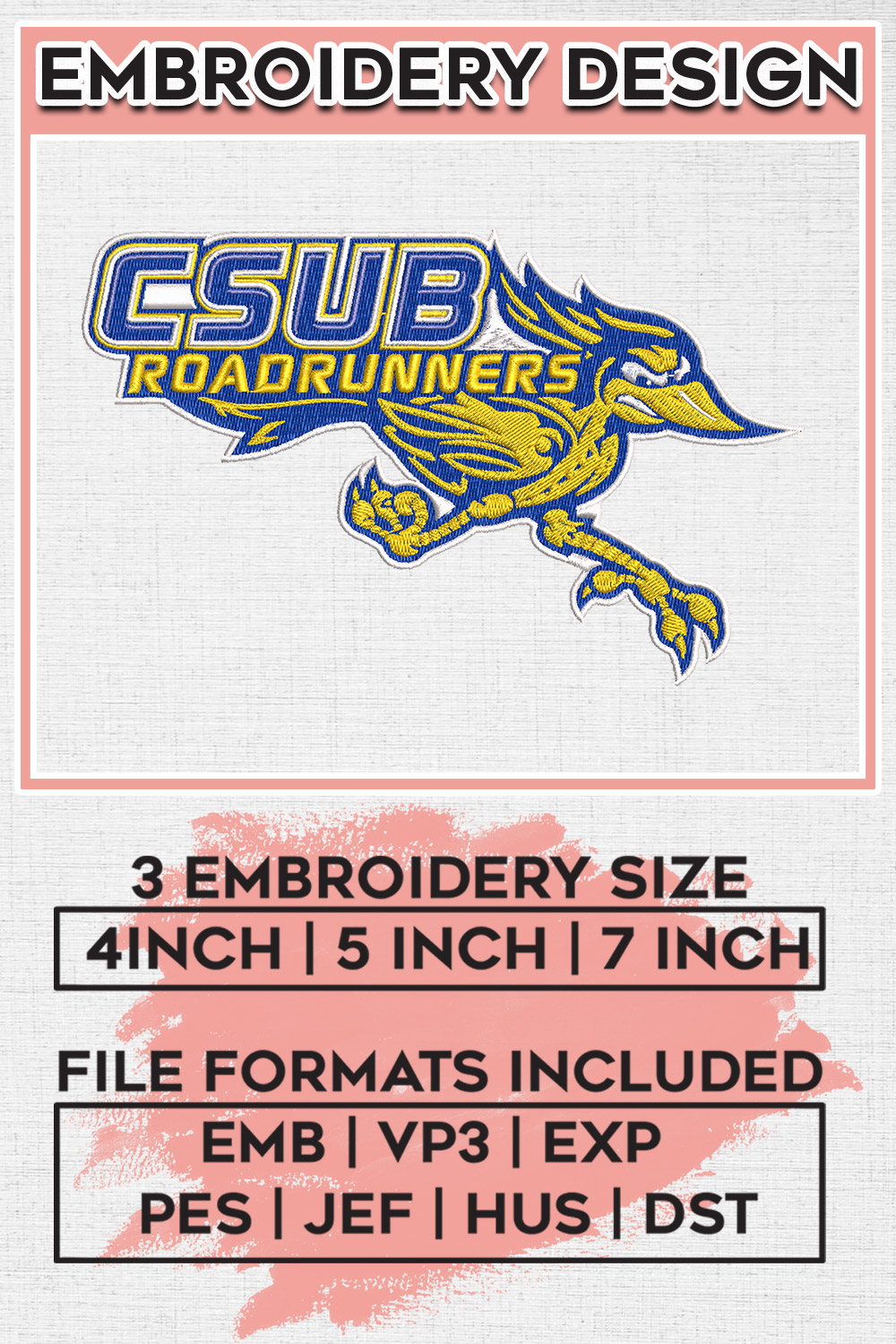 Ncaa Cal State Bakersfield Roadrunners Embroidery Designs, Ncaa Logo Embroidery Files, California State University at Bakersfield Logo Embroidery Design, NCAA CSUB Roadrunners Machine Embroidery Design, Digital Download
