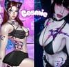 Step into a bold, cosmic-goth world where galaxy energy meets fierce fantasy. This texture blends deep blacks, electric blues, and neon purples with star-dusted body art and high-gloss detailing for a dramatic, futuristic finish. Swirling nebula patterns, crescent moons, and sharp metallic accents create a powerful contrast between smooth shine and edgy design.