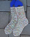 These are toe-up with a wedge toe and an afterthought heel with an optional mini short row gusset (these can be knit two at a time easily if you like to work this way as I did - instructions are for one at a time).
