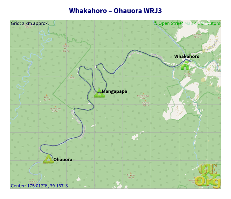 Whanganui River Journey, part 1, Cherry Grove to Ohinepane, one GPX file, one GeoJSON file, one OpenStreetMap.