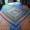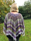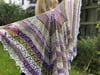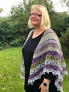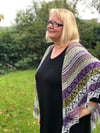Respryn is a stunning, large lace shawl. Large eyelets with a bead detail adorn the edging. Knitted in a linen yarn, but other fibres can also be used. Respryn is a square shape but knitted back and forth (see blocking photo).