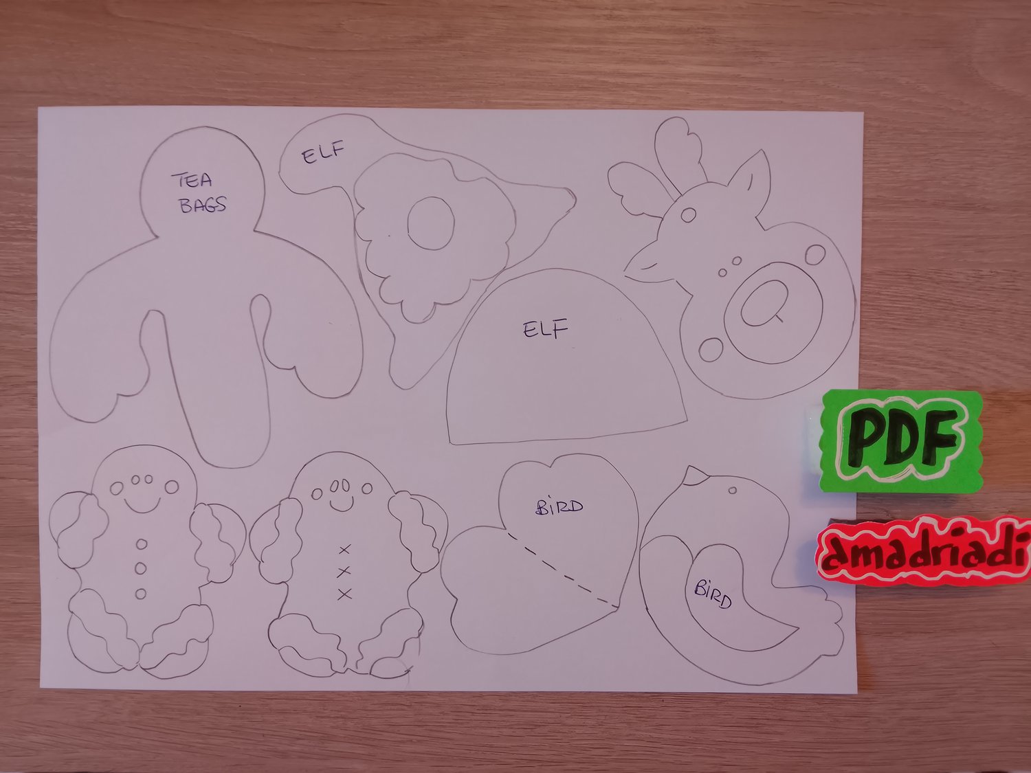 -Tea Holder Bag, Christmas, Robin Bird, Gingerbread man, Elf.