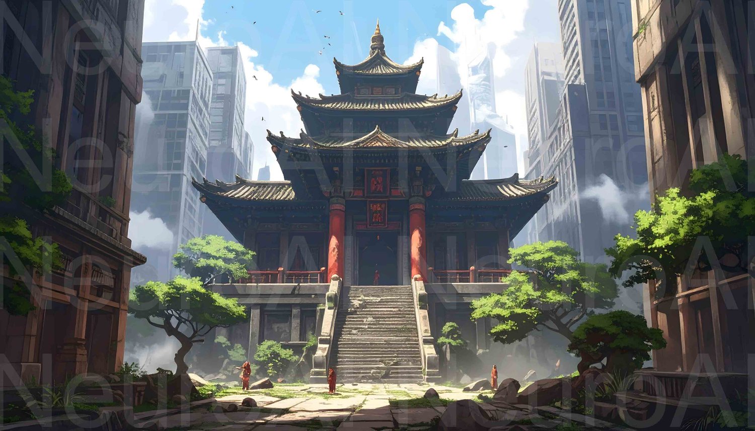 Ancient temple meets modern city, spiritual retreat