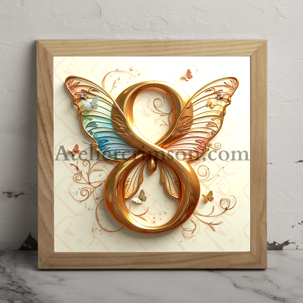 Number 8 golden luxury butterfly .Download Now this high quality AI-generated image, perfect for adding a touch of luruxy and creativity to any space.