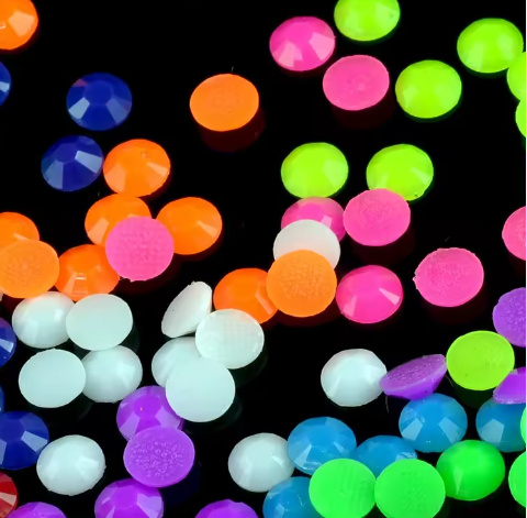 Elevate your creations with neon sparkle that glows in the dark under UV-A blacklight! Perfect for parties, concerts and nighttime events. Dive into the world of luminous possibilities with our neon rhinestones.