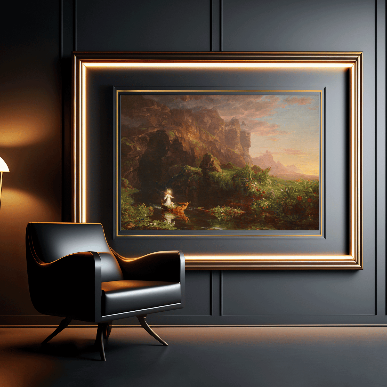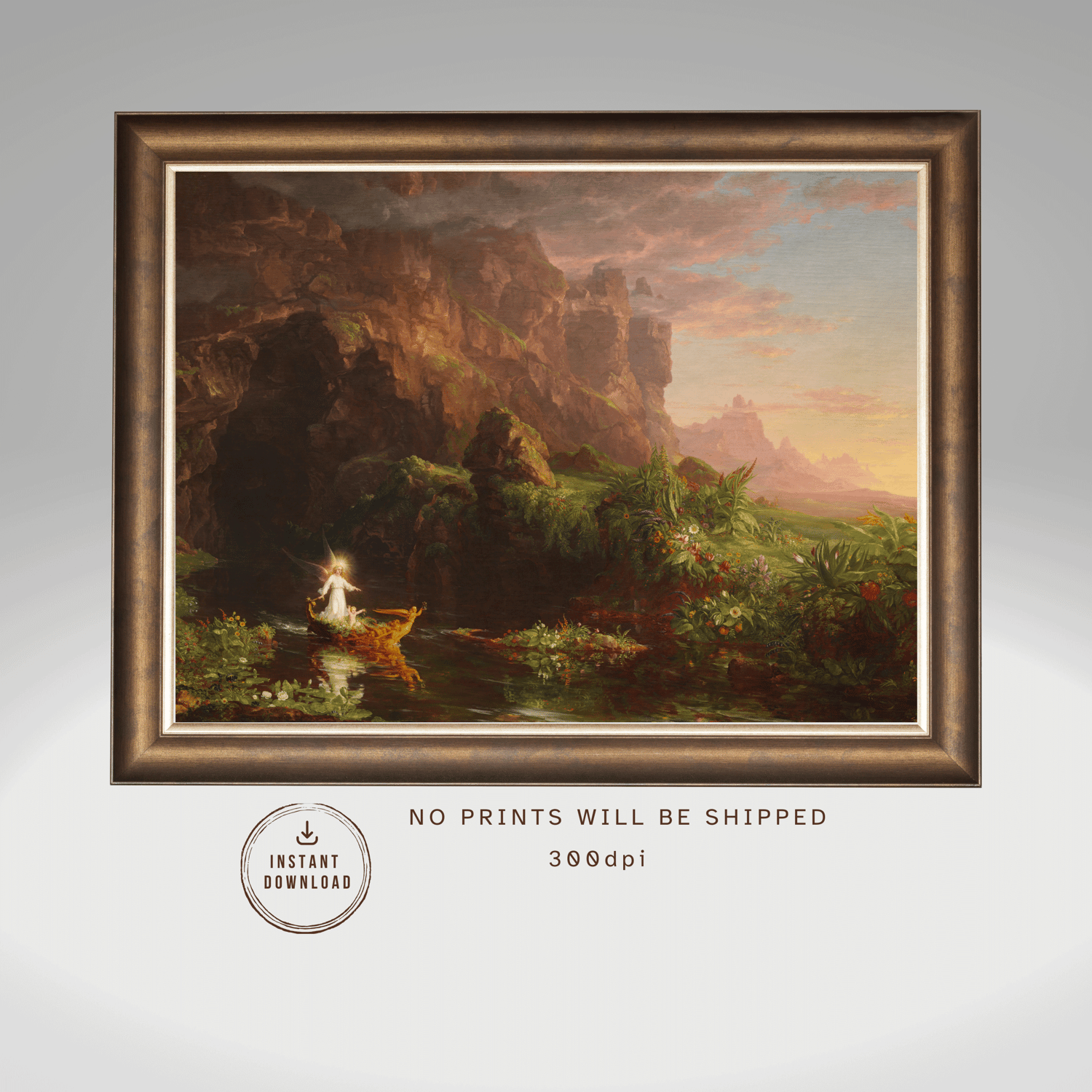 Experience the profound journey of life through Thomas Cole's masterful painting, The Voyage of Life: Childhood. It captures the beauty and complexity of our existence, blending rich symbolism with stunning landscapes. Childhood represents innocence, new beginnings, and hope. This painting is a thoughtful example of 19th-century Romanticism, focusing on humanity's connection to nature and the divine, as well as the philosophical exploration of life’s transient nature.