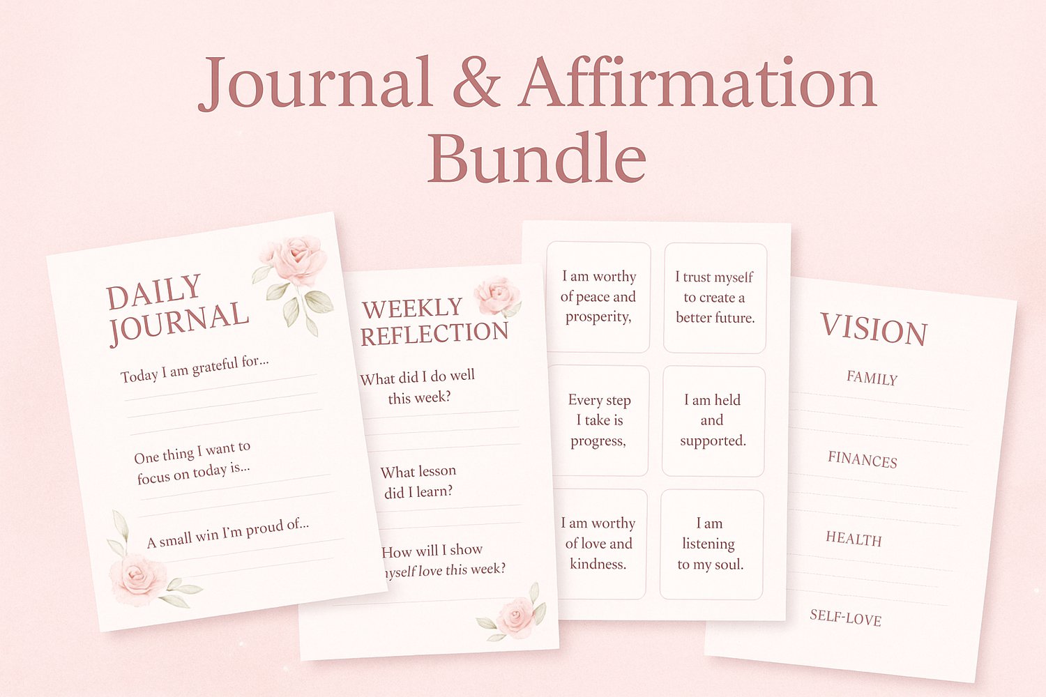 Soft & Feminine Journal + Affirmation Printable Bundle | Self-Care PD