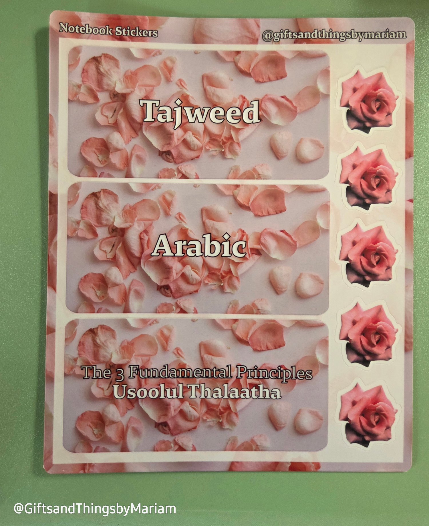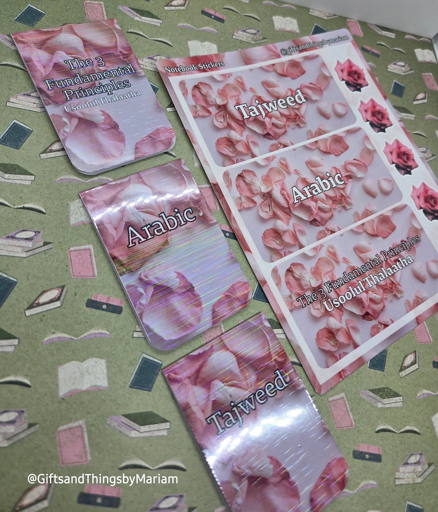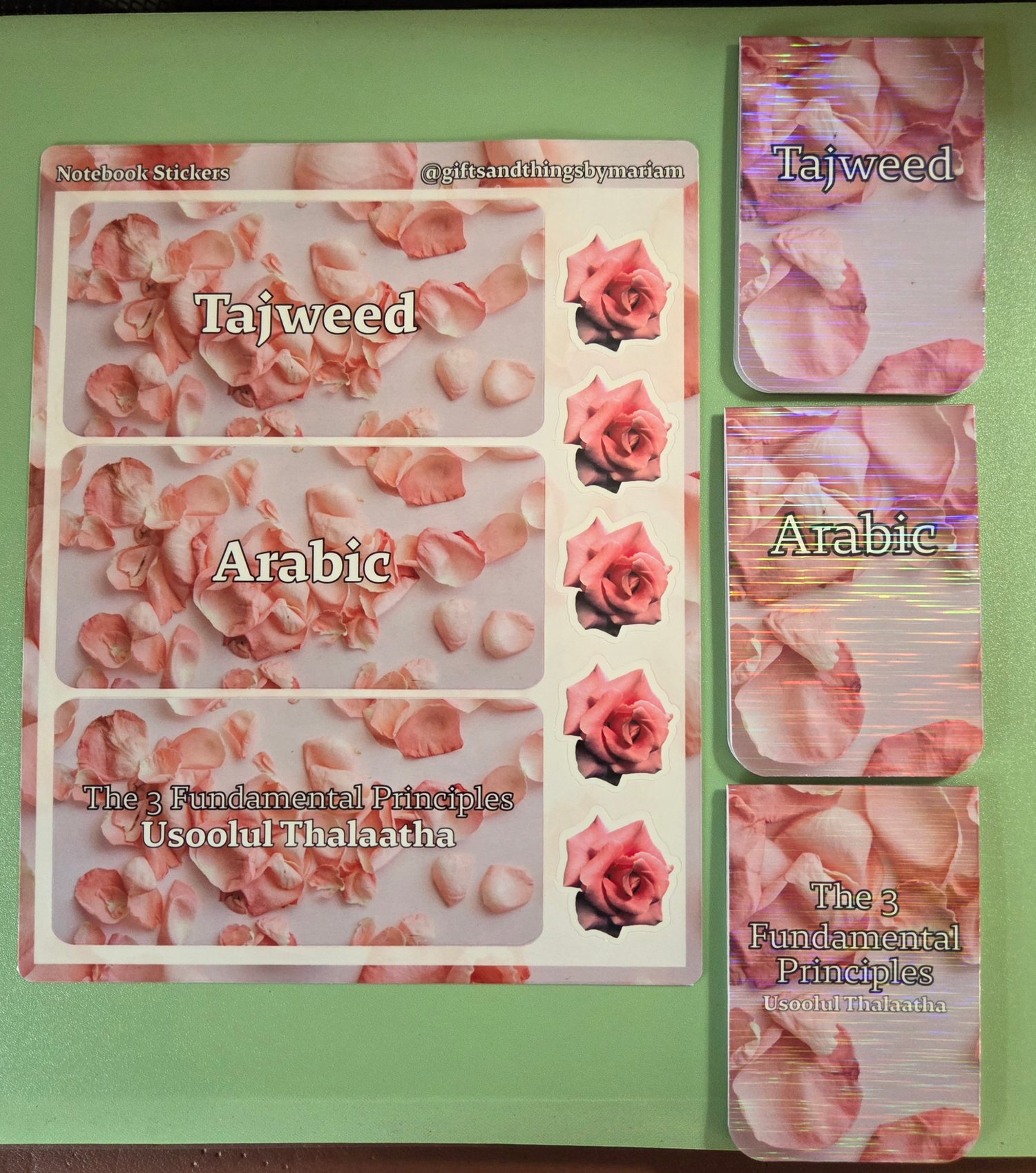 Transform your Islamic studies with our beautifully coordinated Notebook Labels and Magnetic Bookmarks for Arabic, Tajweed, and The Three Fundamental Principles of Islam (UαΉ£Ε«l ath-ThalΔthah).