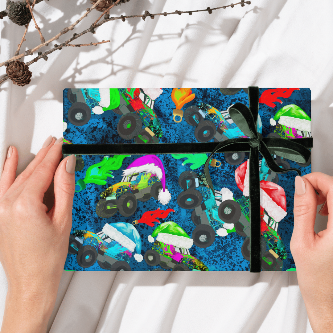 Festive Christmas Monster Truck Seamless Patterns Blues
