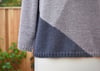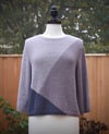 NEOTSU is a bold, three color intarsia sweater, with mirrored front and back and 3/4 length sleeves worked top-down in two different colors.