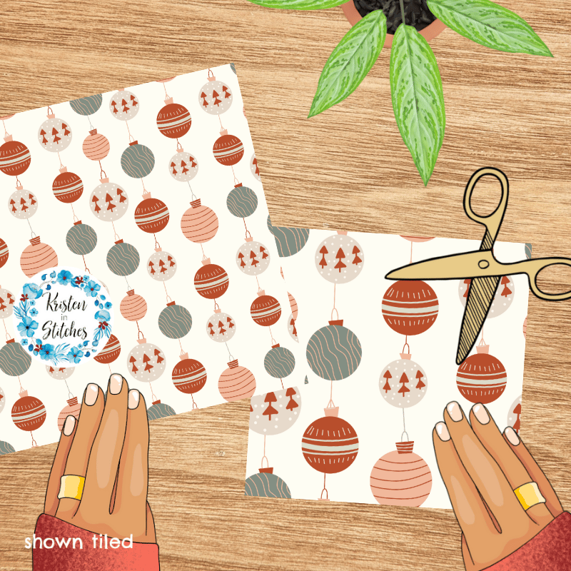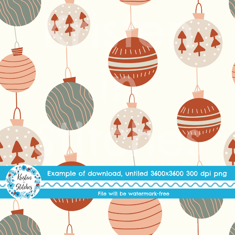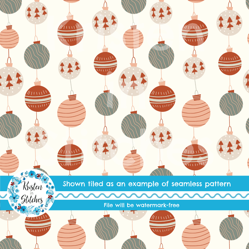 Boho Holiday Ornaments Seamless Pattern, Rustic Christmas