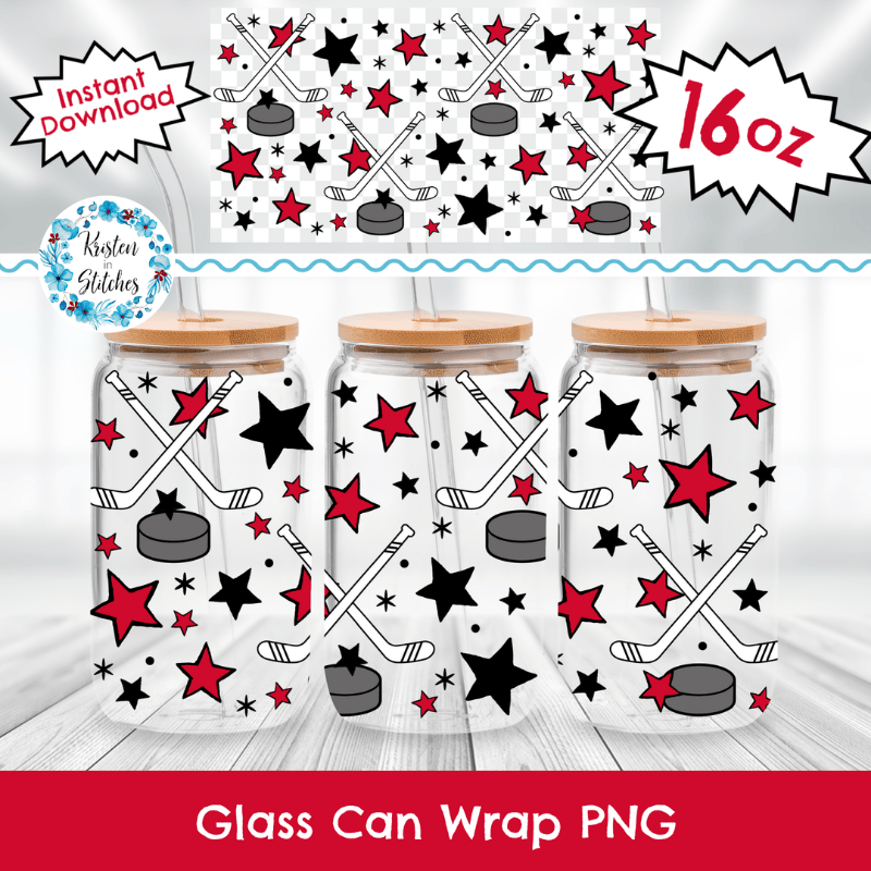 Hockey Team 16 oz Glass Can Wrap Transparent PNG, Chicago Blackhawks Red Black