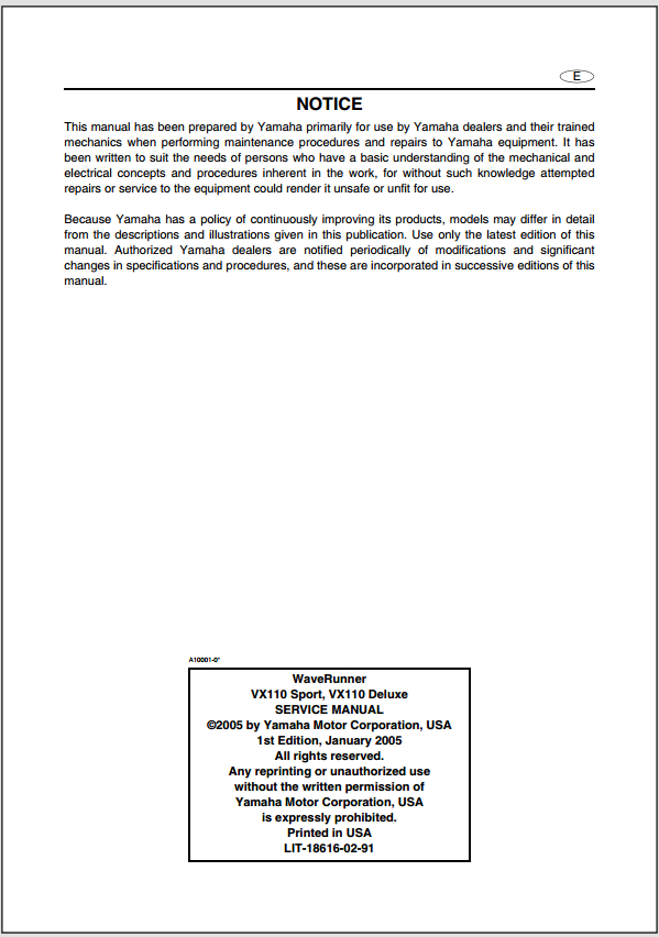 2005 Yamaha Wave Runner VX110 Sport, VX110 Delux Service Manual LIT-18616-02-91