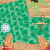 Green shamrocks, ribbon bows, daisy flowers and hearts.