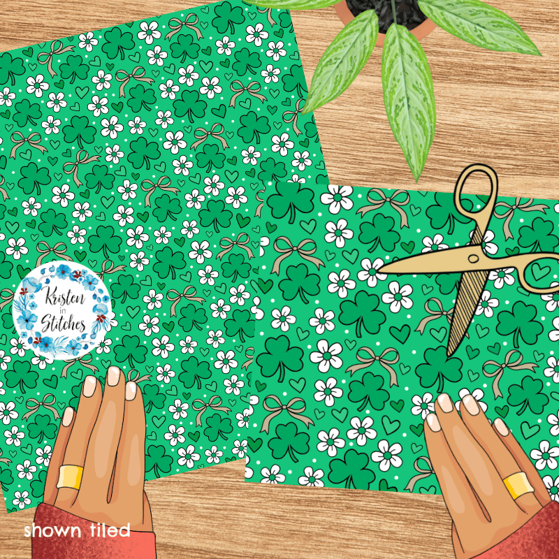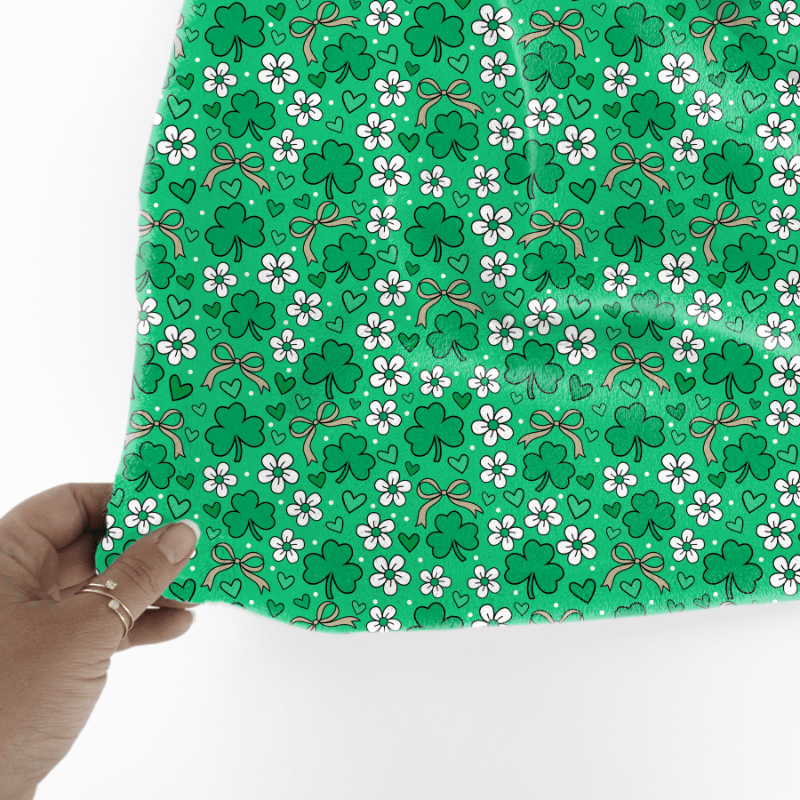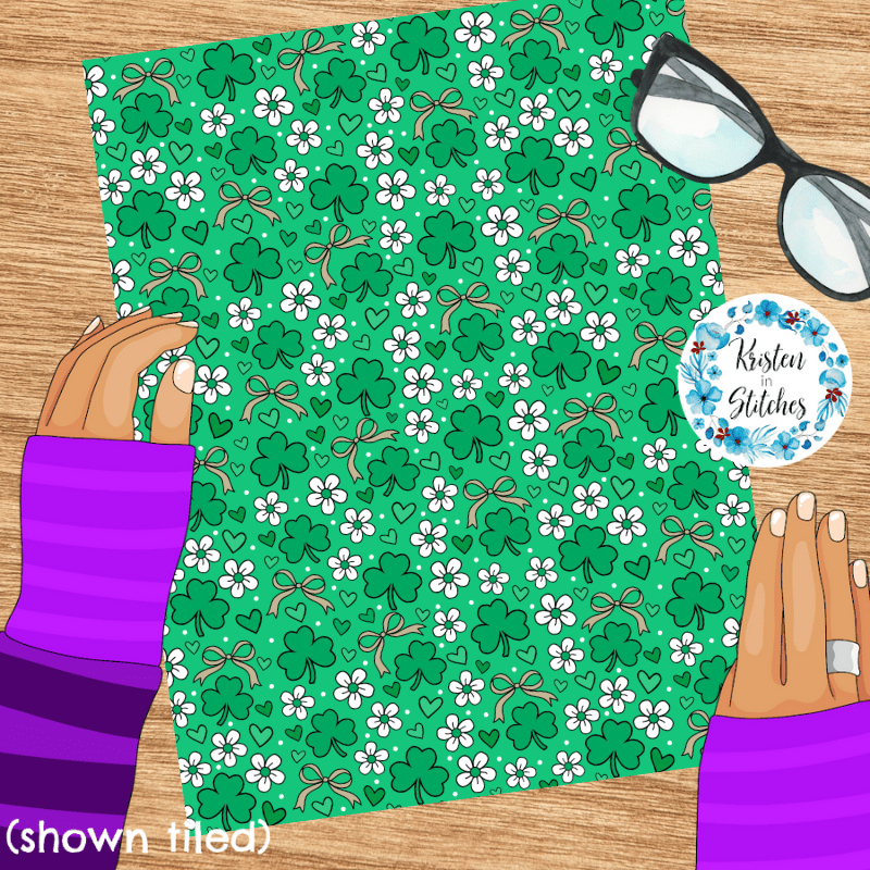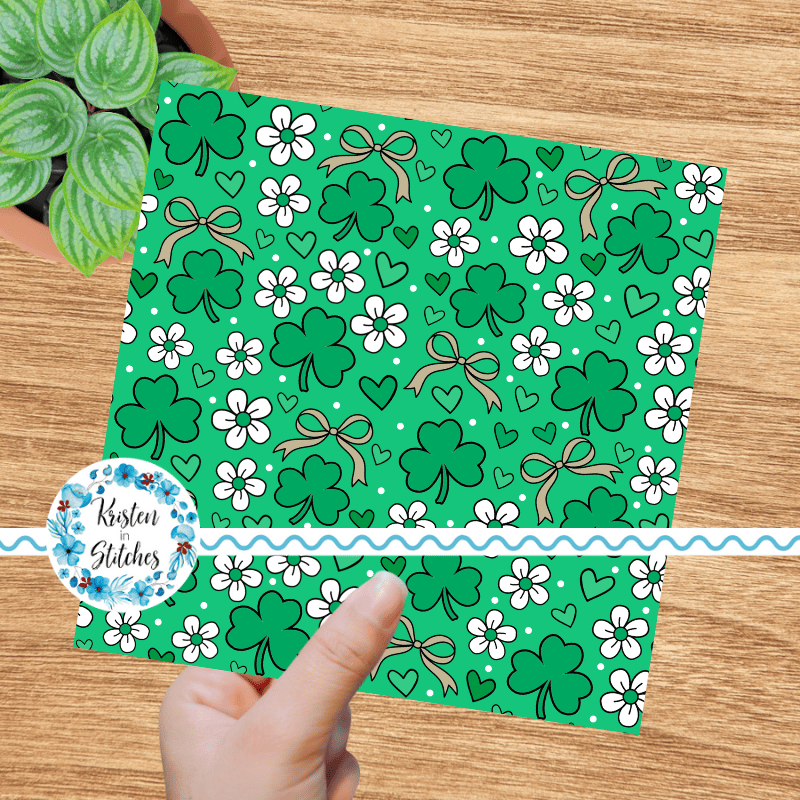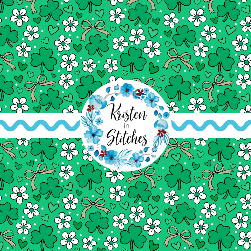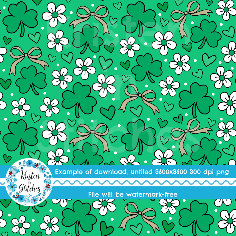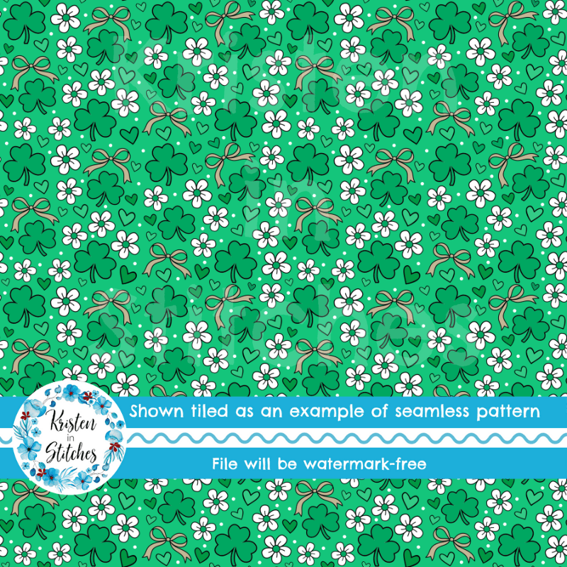 Shamrock Daisy Floral St. Patrick's Day Seamless Pattern, Coquette Bows and Hearts