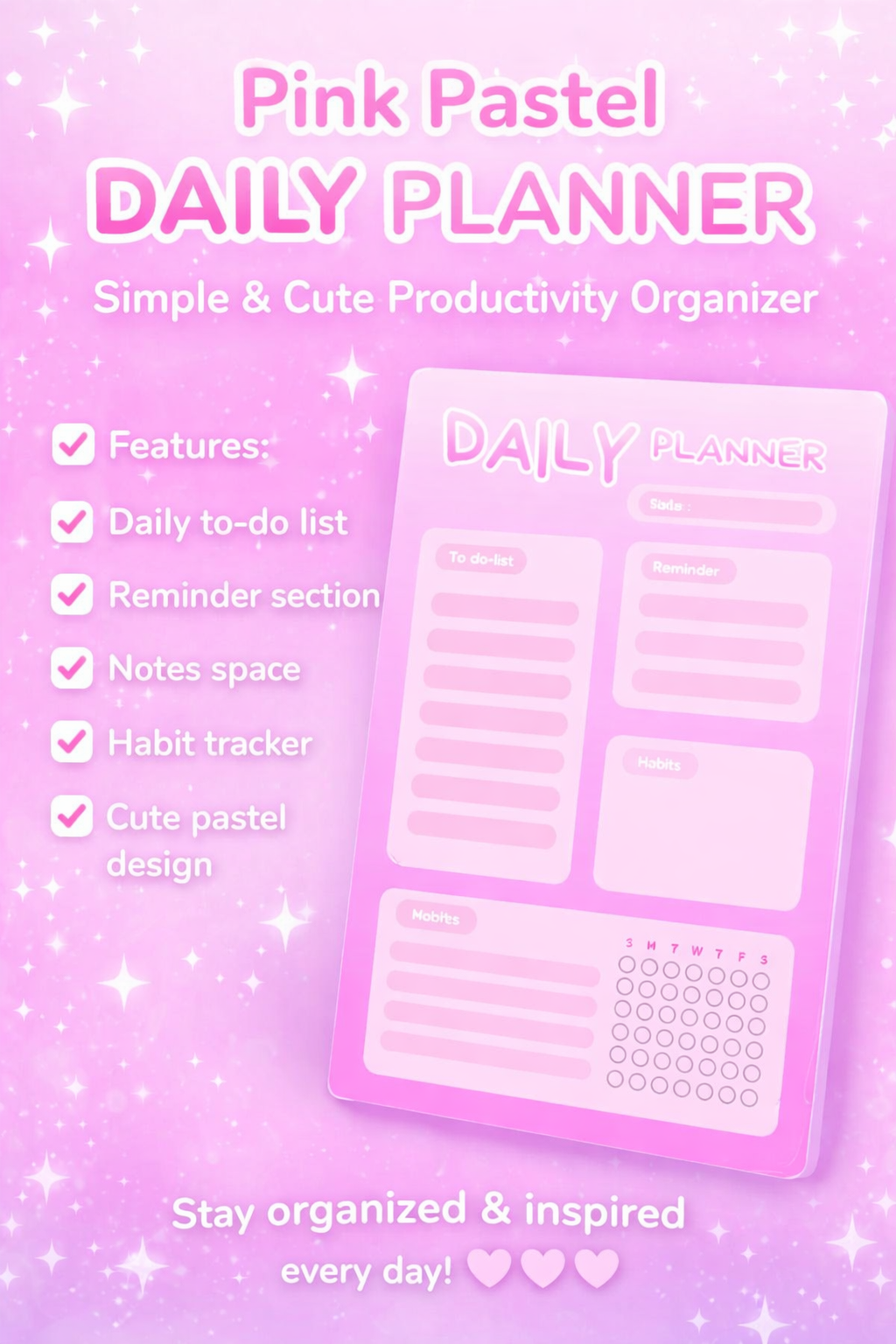 Pink Pastel Daily Planner – Simple & Cute Productivity Organizer