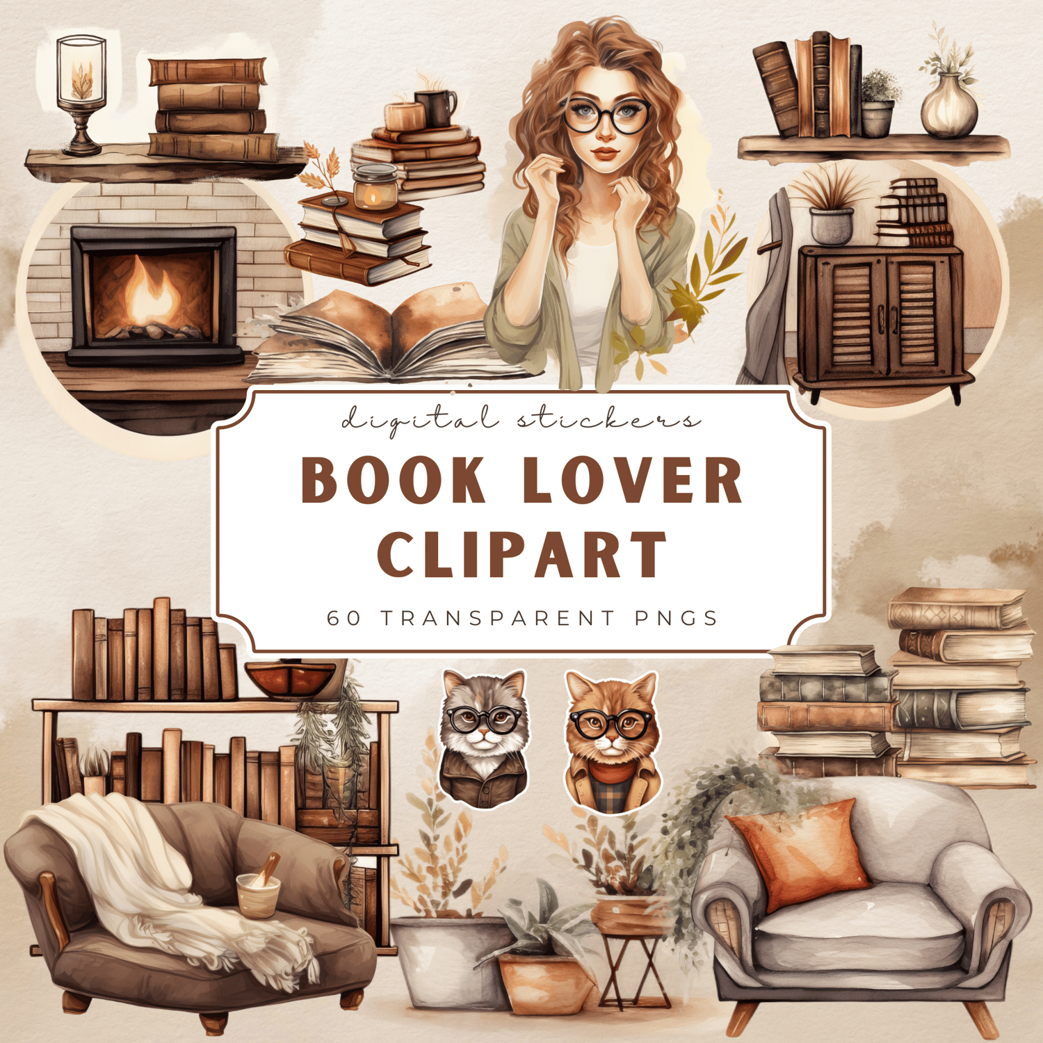 Calling all bookworms and cozy reading lovers! This 60-piece Bookish Digital Sticker is perfect for digital planners, scrapbooks, journal pages, and reading tracker templates. Whether you're using GoodNotes, Notability, or any digital planner app, these high-quality PNG stickers will bring your love of books to life!