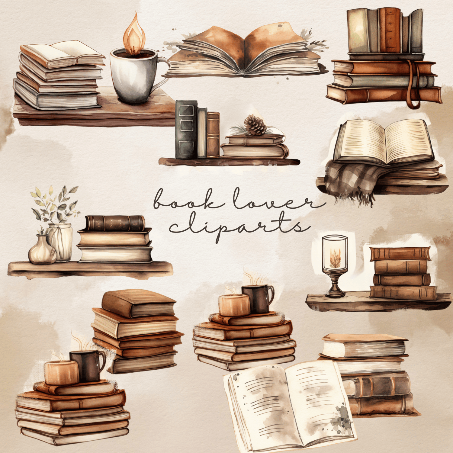 Cozy reading themes: books, coffee cups, glasses, bookstack, cozy chairs and more