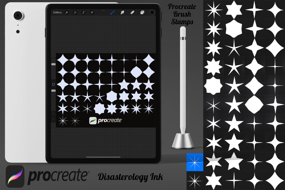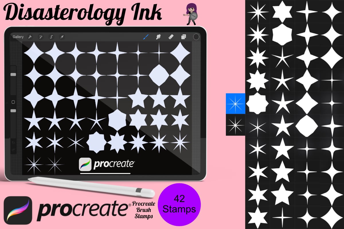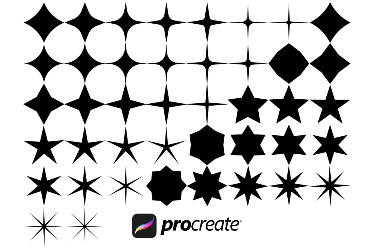 Sparkling Stars Set 2 Procreate Brush Stamps, 42 Star Stamps