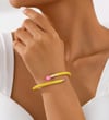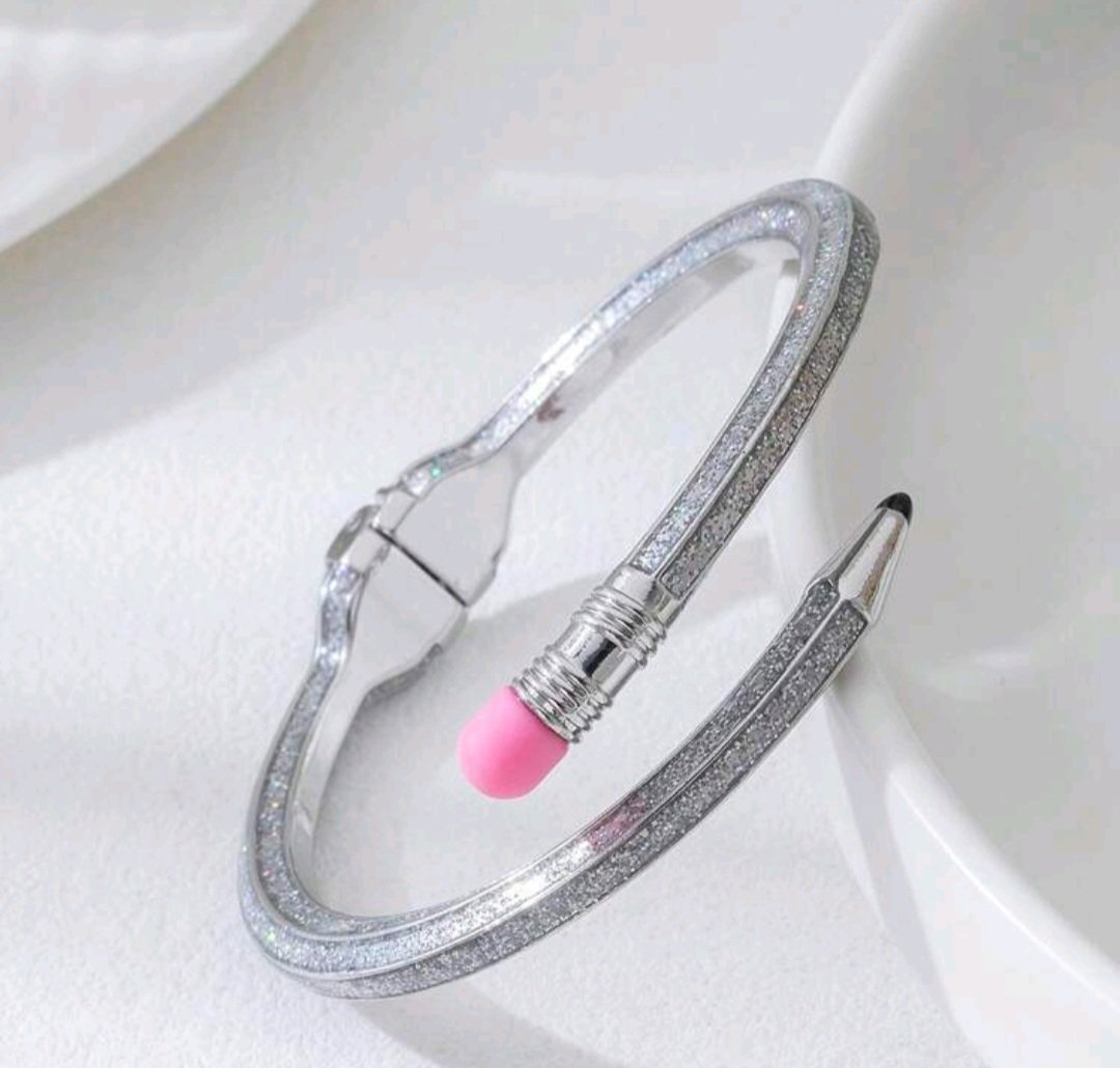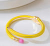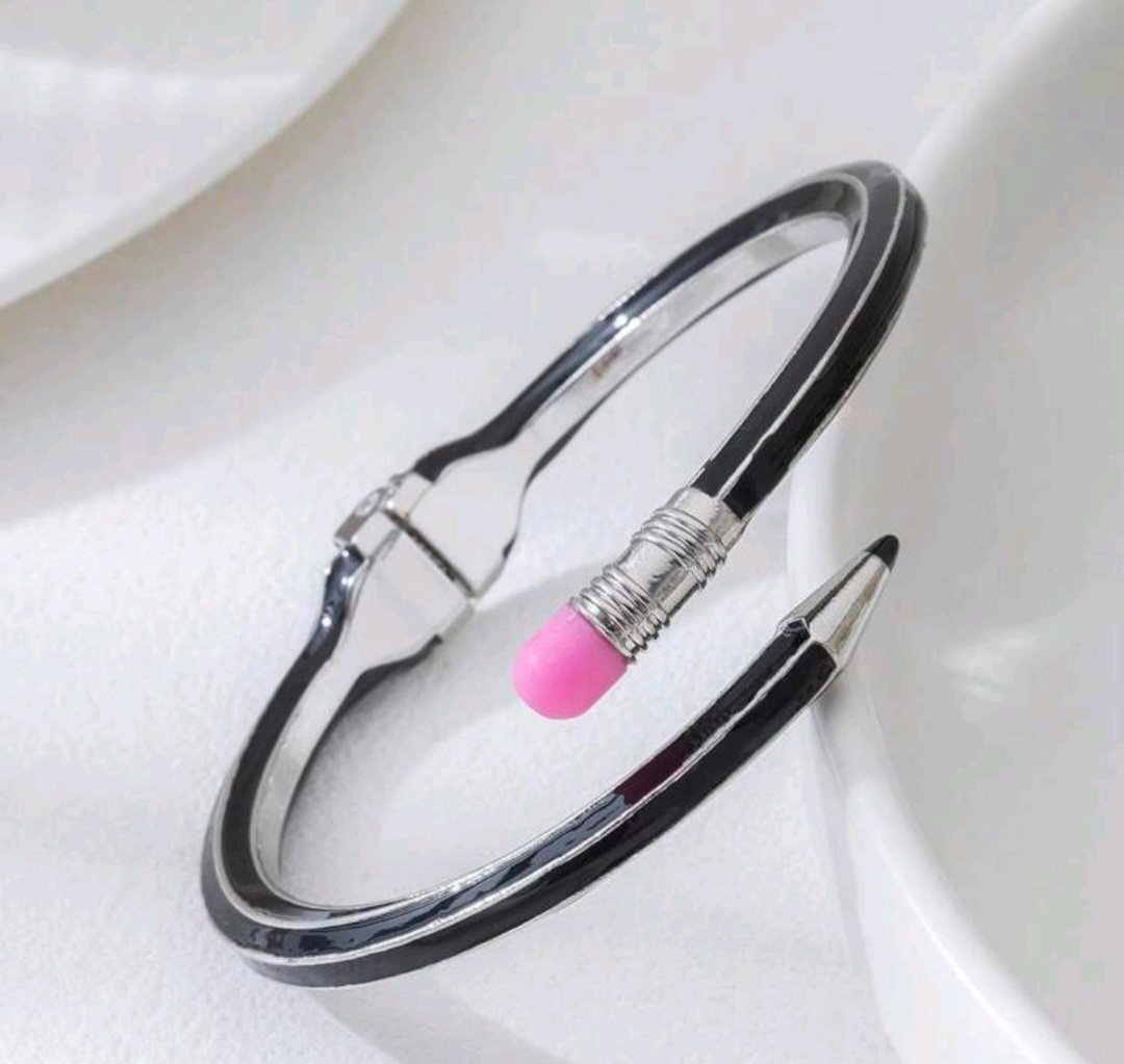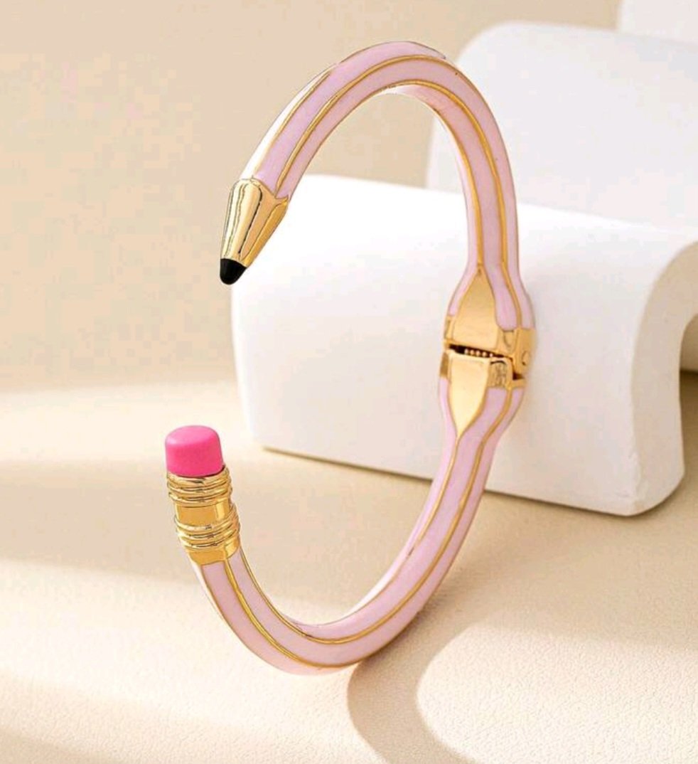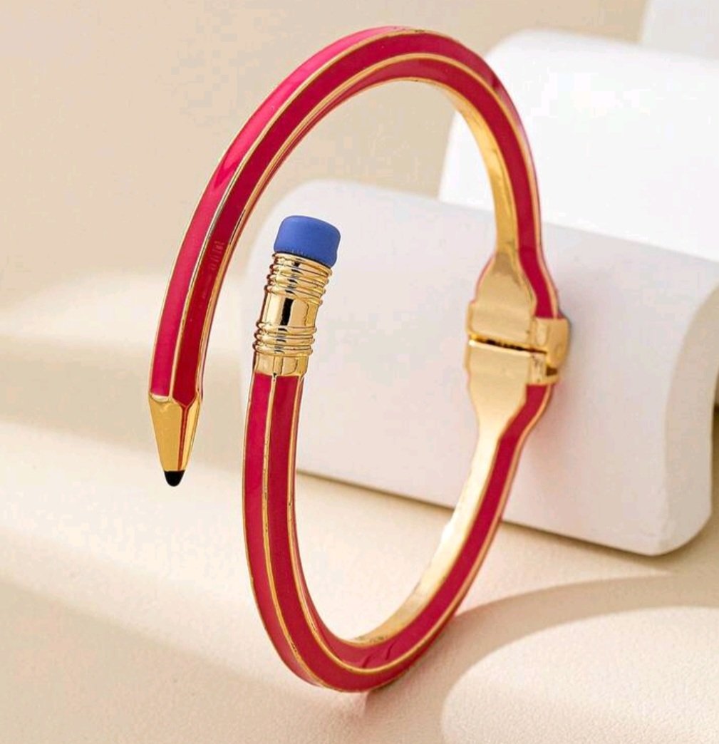 Add a playful touch to your outfit with this vibrant yellow and pink pencil bracelet. Perfect for creative spirits.