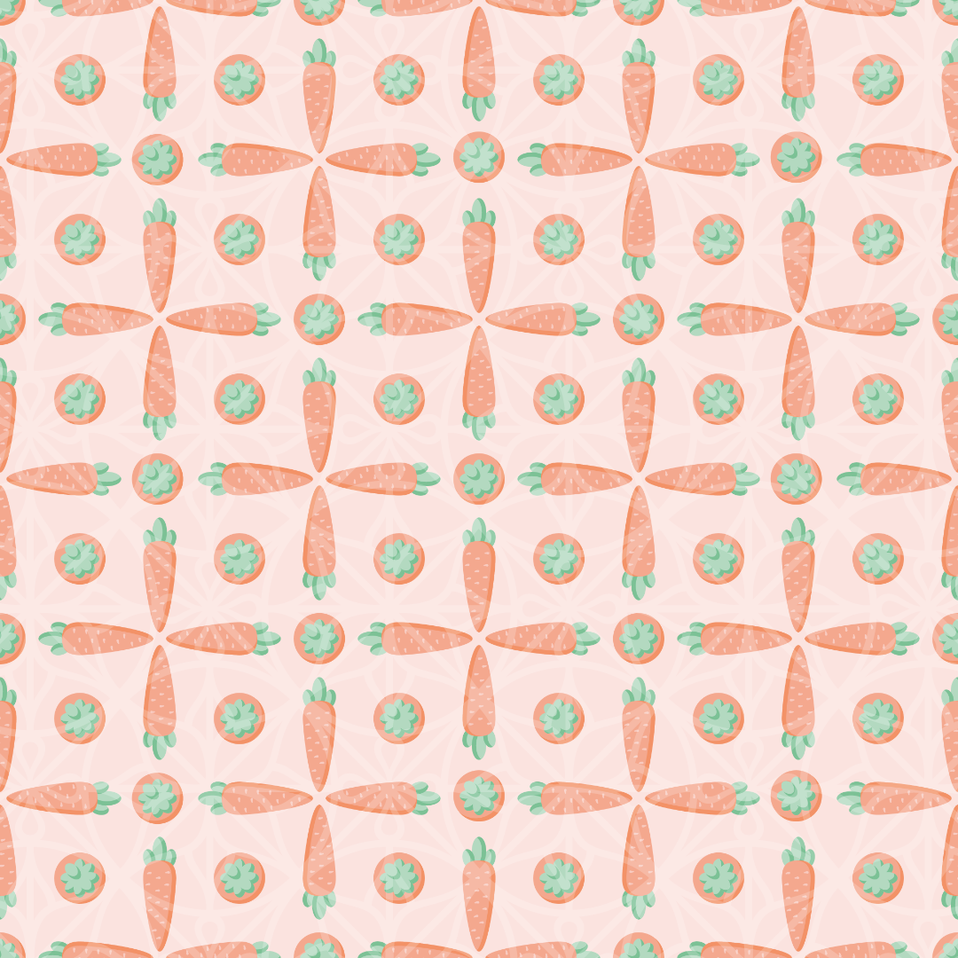 Minimalist carrot seamless vector pattern featuring side and up views of the vegetable.