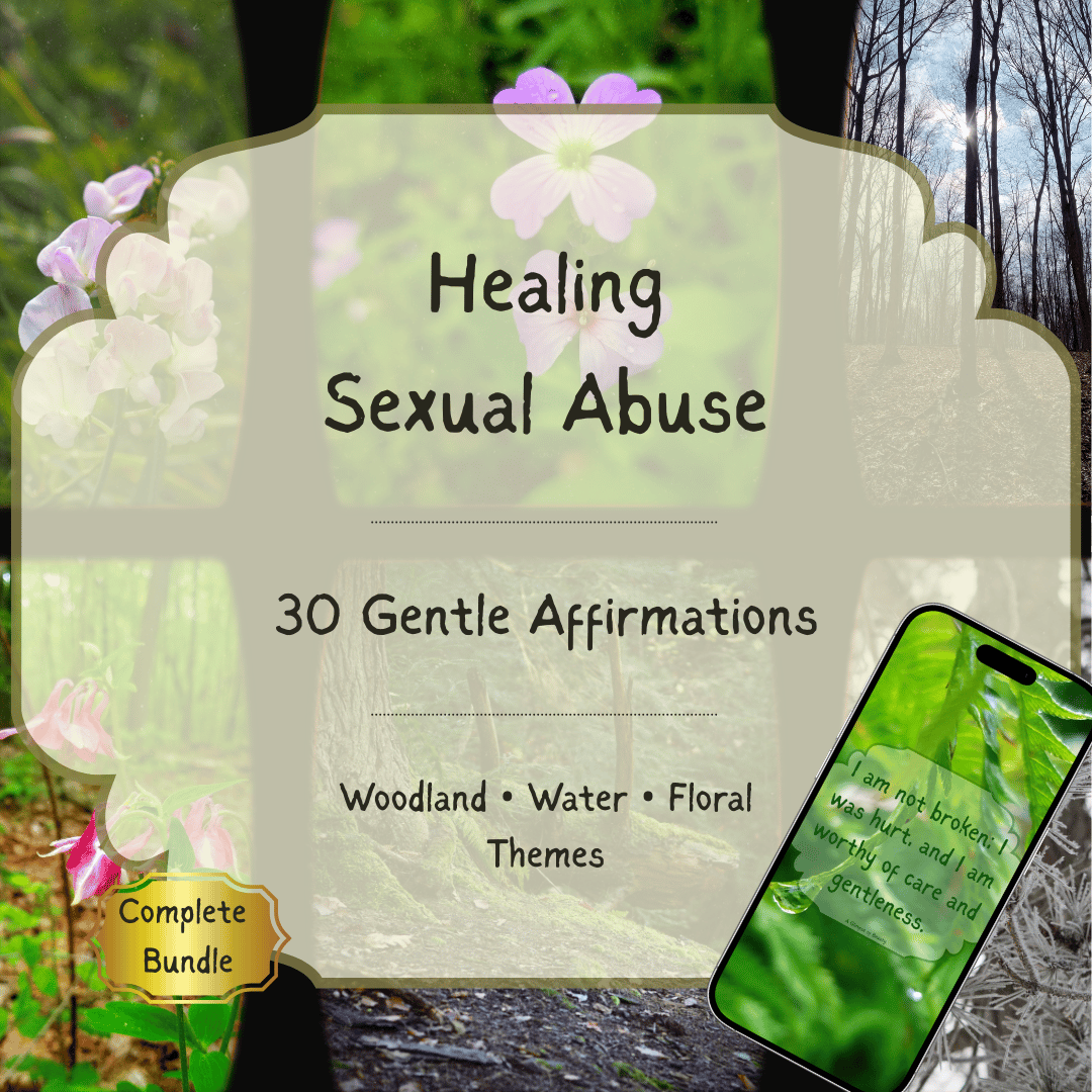This bundle includes three nature-inspired affirmation wallpaper collections created to support your journey of healing sexual abuse. Each collection pairs meaningful affirmations with peaceful nature photography, offering calming reminders you can carry with you throughout your day. With three visual themes — woodland, water, and flowers — you can choose the atmosphere that resonates with you most in the moment. Each theme offers a different emotional tone while supporting the same intention: encouraging compassion, reflection, and personal growth.