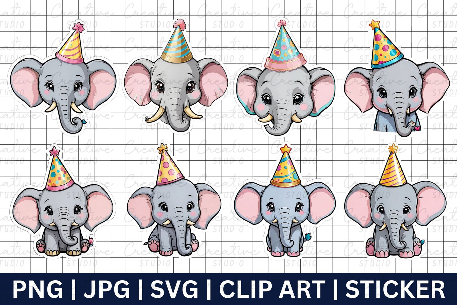 Elephant With Party Hat Design Clip Art Sticker Sublimation