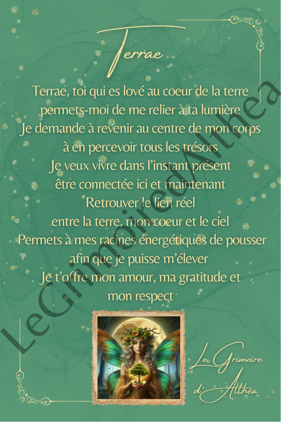La neuvaine “Terrae” a été préparée par mes soins, avec une intention magique de manifestation : elle t’aide à t'ancrer, à te rattacher à tes racines pour trouver force et puissance dans la réalisation de tes désirs. "Terrae" te relie à la Déesse de la Terre et devient un pilier de ta manifestation.