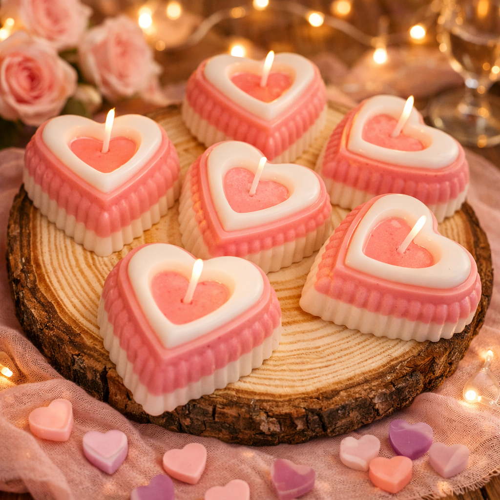 Χειροποίητο Αρωματικό Κερί Βανίλιας Καρδιά – Ροζ & Λευκές Αποχρώσεις για Ρομαντική και Cozy Ατμόσφαιρα
