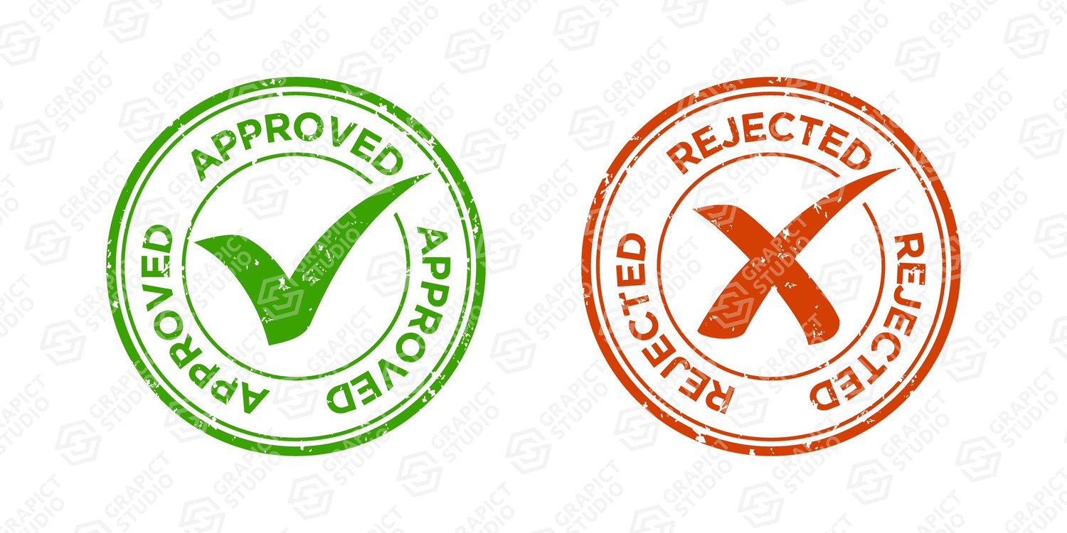 Approved and rejected stamp, design element suitable for websites, print design or app. Glyph style. Vector clipart image, graphic design element.