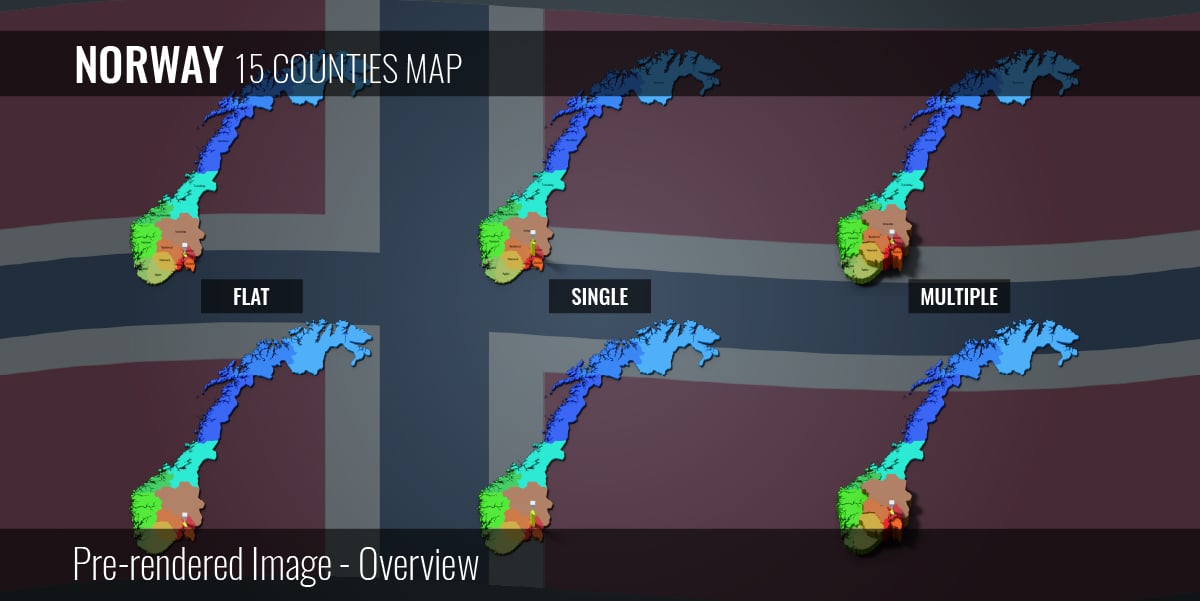 Norway 15 Counties (2024) Map (3D + Pre-rendered Images)