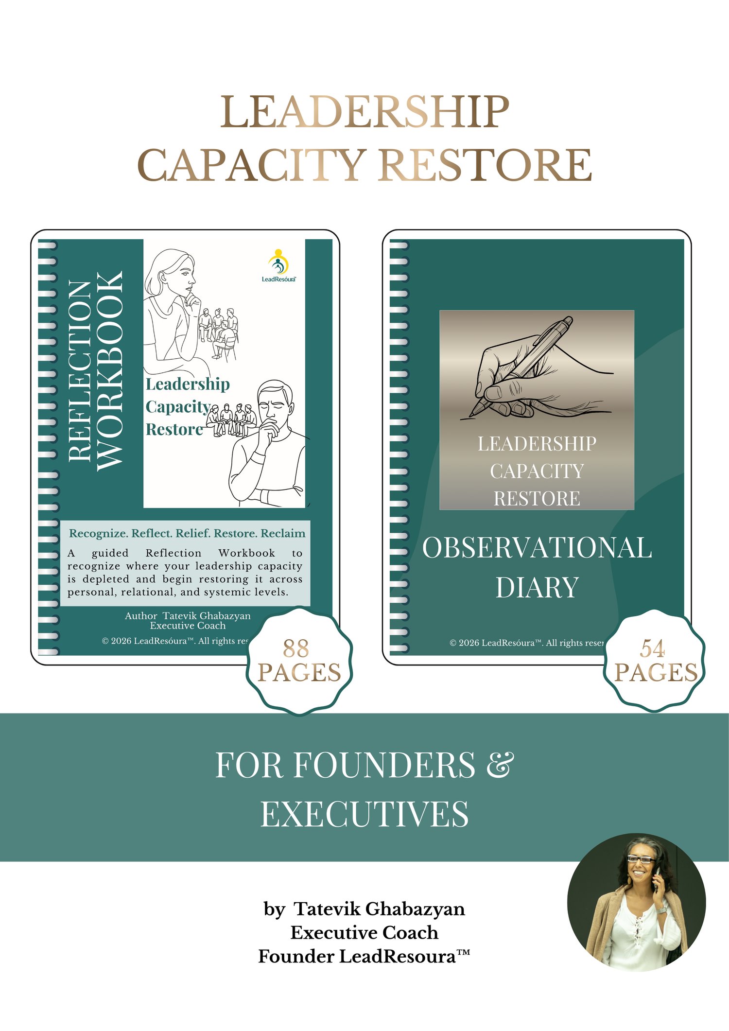 ✅ Leadership Capacity Restore is the first research-backed, self-directed guided reflection workbook for founders and executives to recognize where leadership capacity is depleted and support restoring it across personal, relational, and systemic levels simultaneously through a 5-phase process (Recognize, Reflect, Relief, Restore, Reclaim) with an Observational Diary that tracks patterns and triggers across mind, body, and emotions, building awareness until recognition becomes automatic.